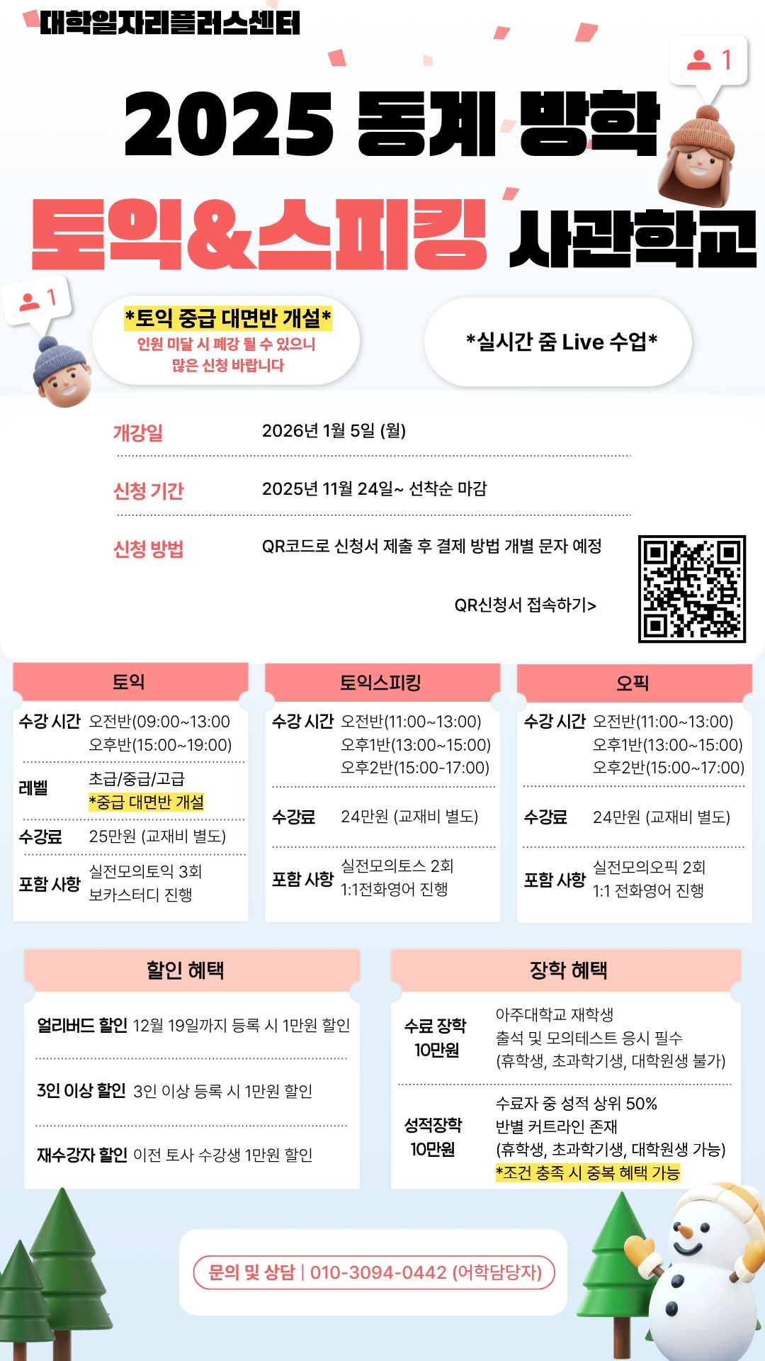 ☃️동계 토익 &스피킹사관학교 모집☃️