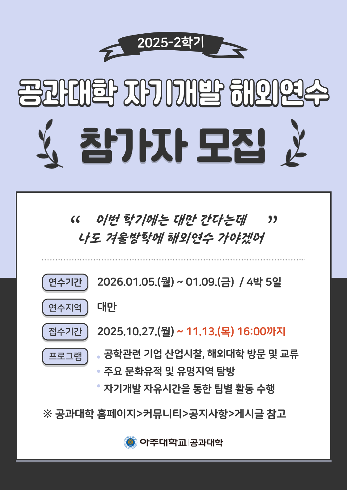 | 공지 | 행사 | 공과대학교학팀 | 2025-11-13 | ||