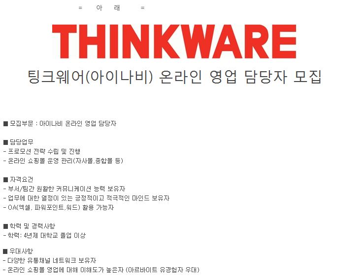 [취업] (주) Thinkware 온라인 영업사원 채용 공고