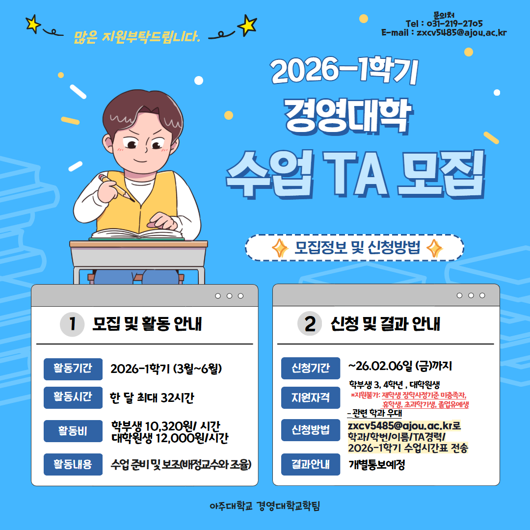 [공지] [경영대학] 2026-1학기 수업 TA(Teaching Assistant) 모집 신청 안내