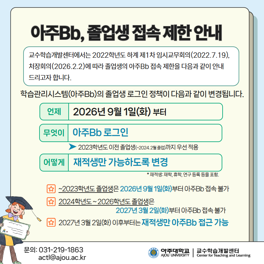 아주Bb 졸업생 접속 제한 안내
