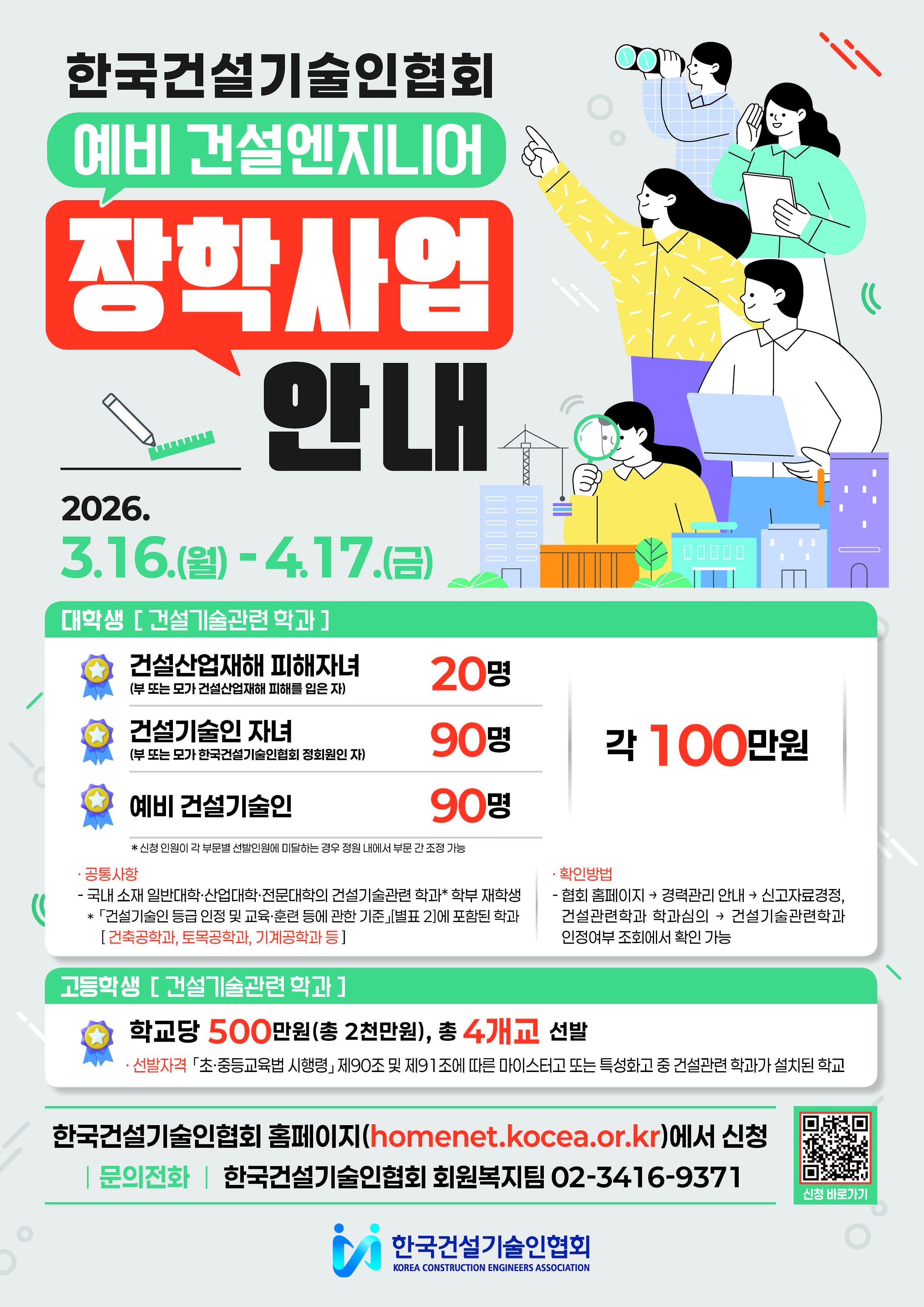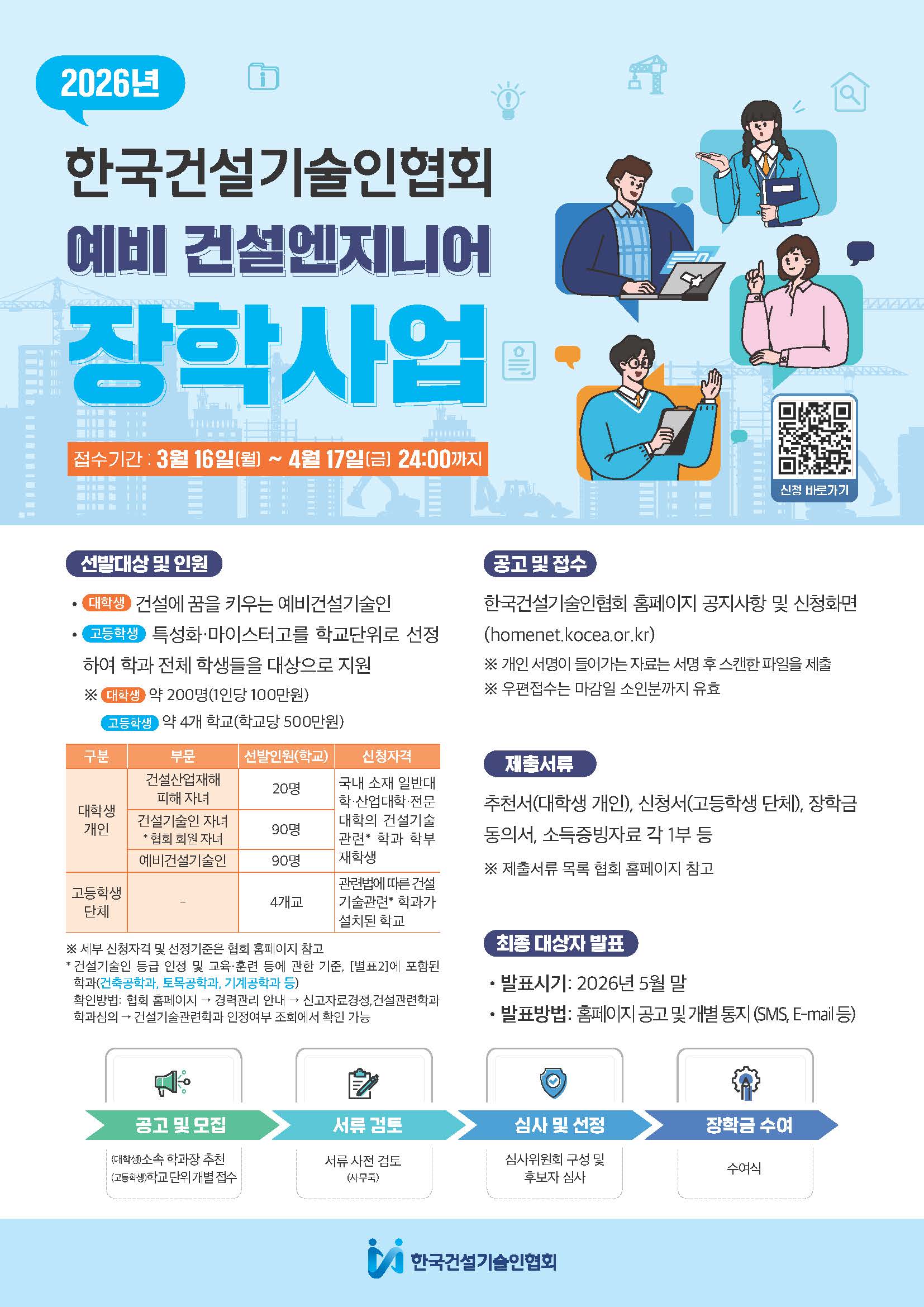 [한국건설기술인협회] 예비 건설엔지니어 장학사업 안내