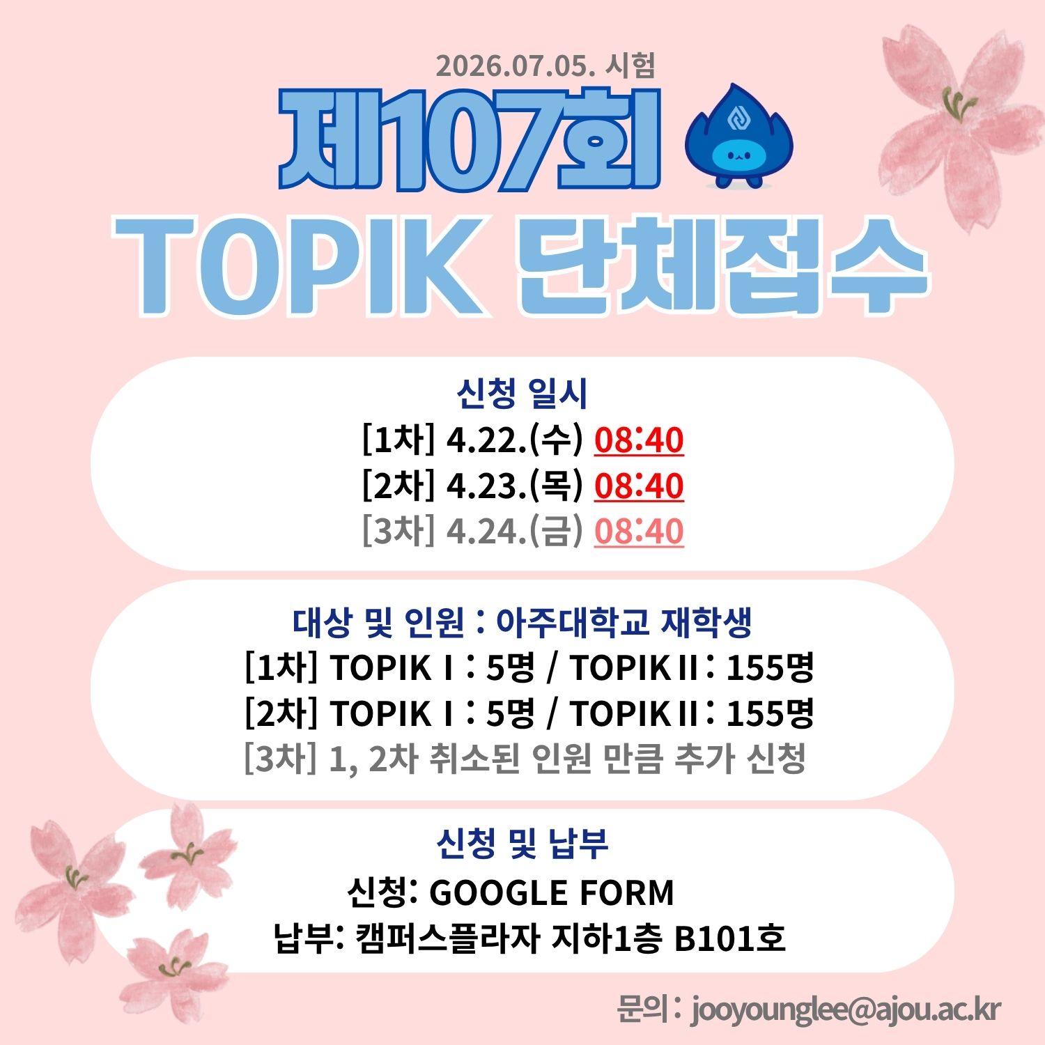 제107회 TOPIK(7.5. 시험) 단체접수 공지