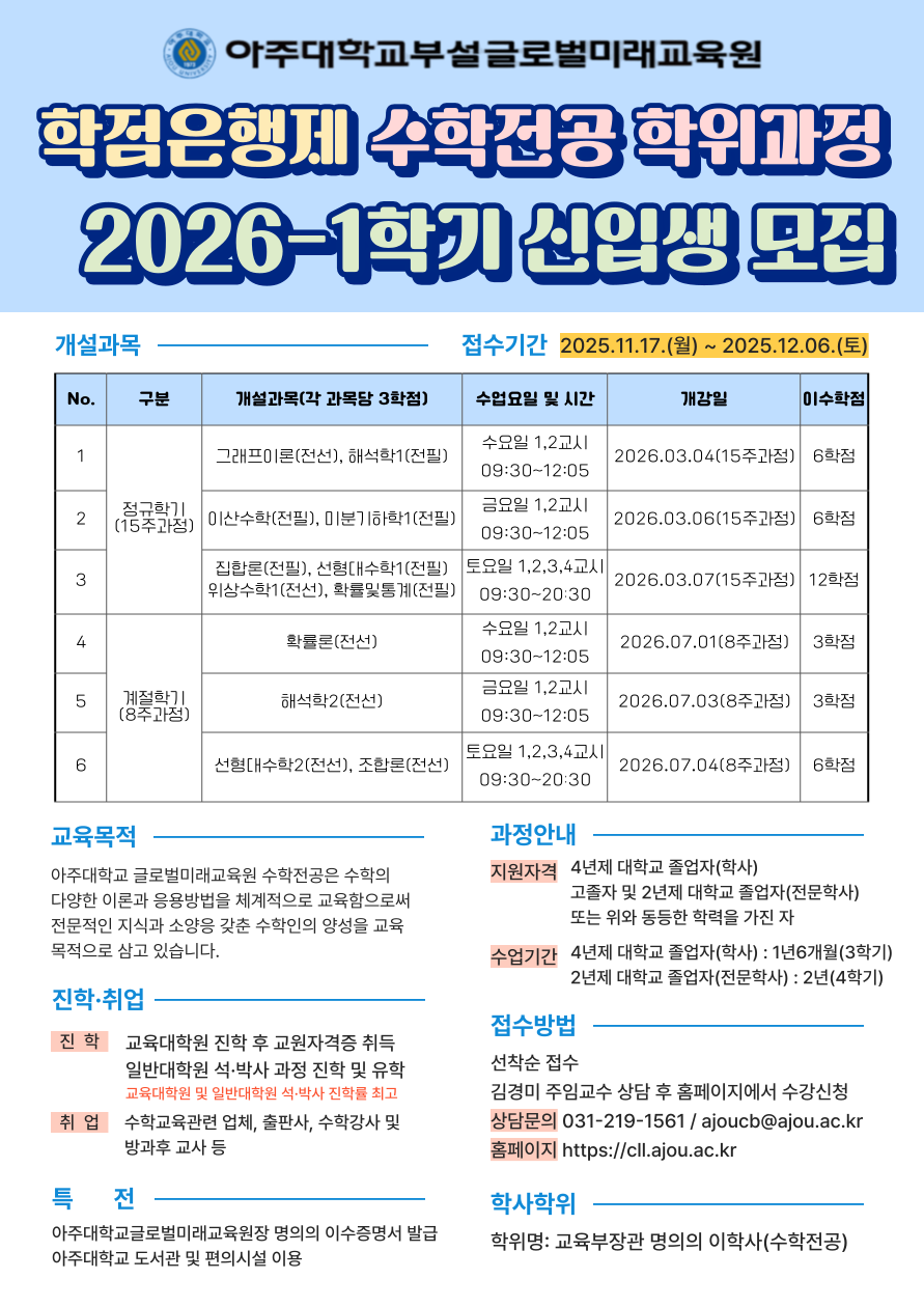 [학점은행제] 2026년 1학기 학점은행제 수학과정 수강생 모집