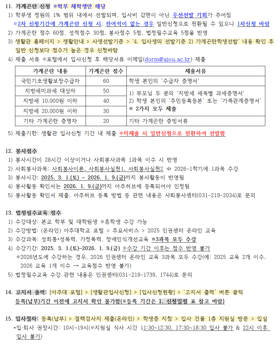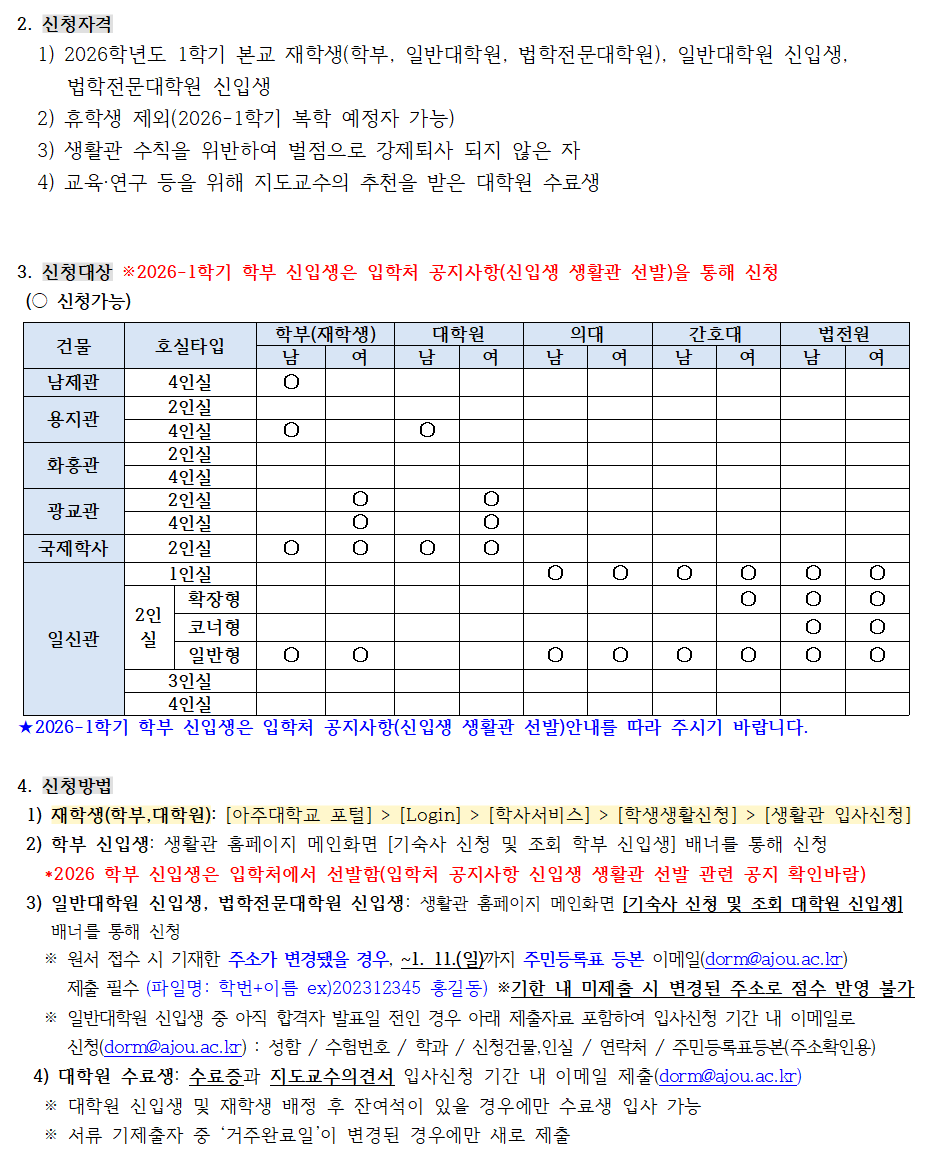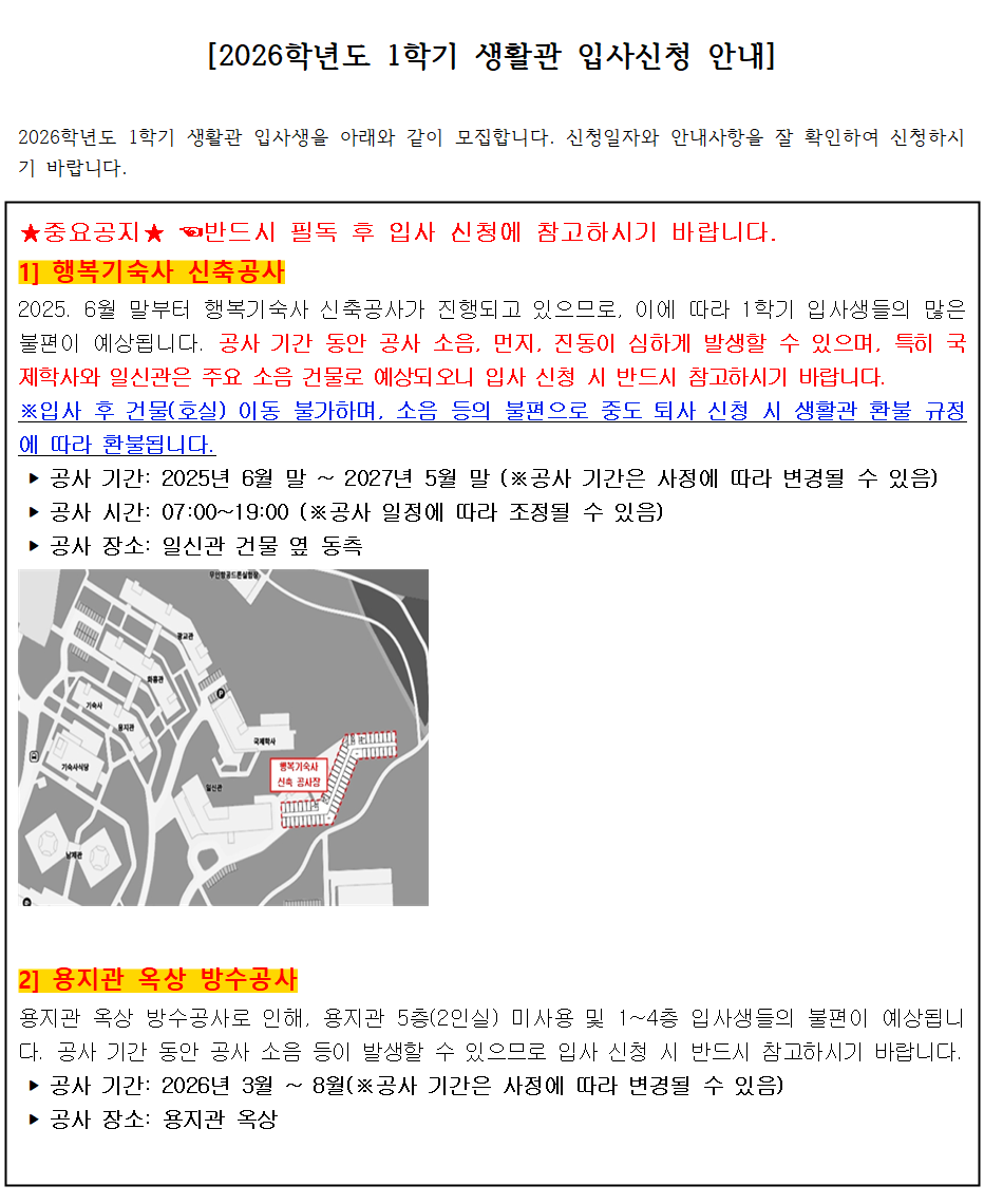 [공지] 2026학년도 1학기 생활관 입사신청 안내