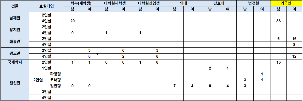 ★ 외국인 T/O 잔여석(남제관, 화홍관, 광교관, 국제학사)→ 내국인 3차 불합격자 대상으로 추가 모집 ★