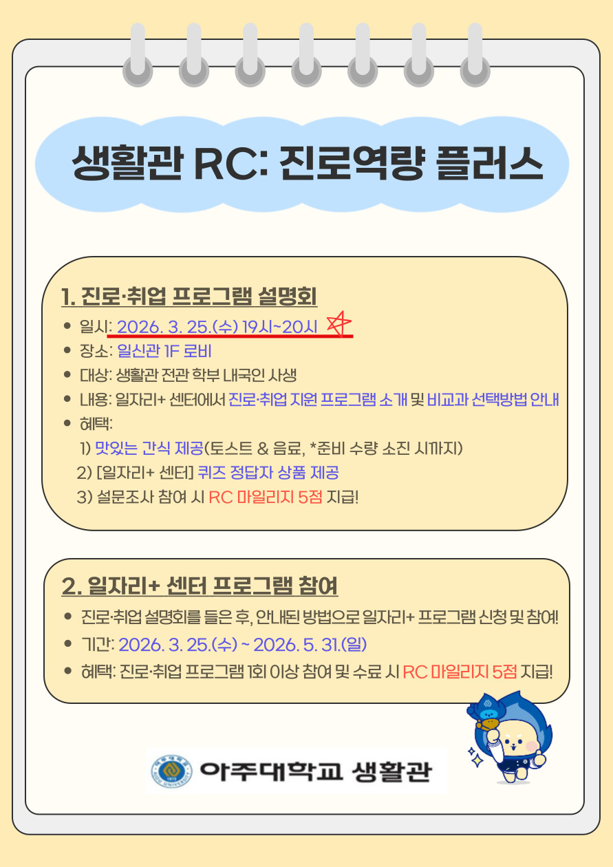 ※(2026-1학기)생활관 '아주 RC 프로그램' 안내문 ☜ (클릭)