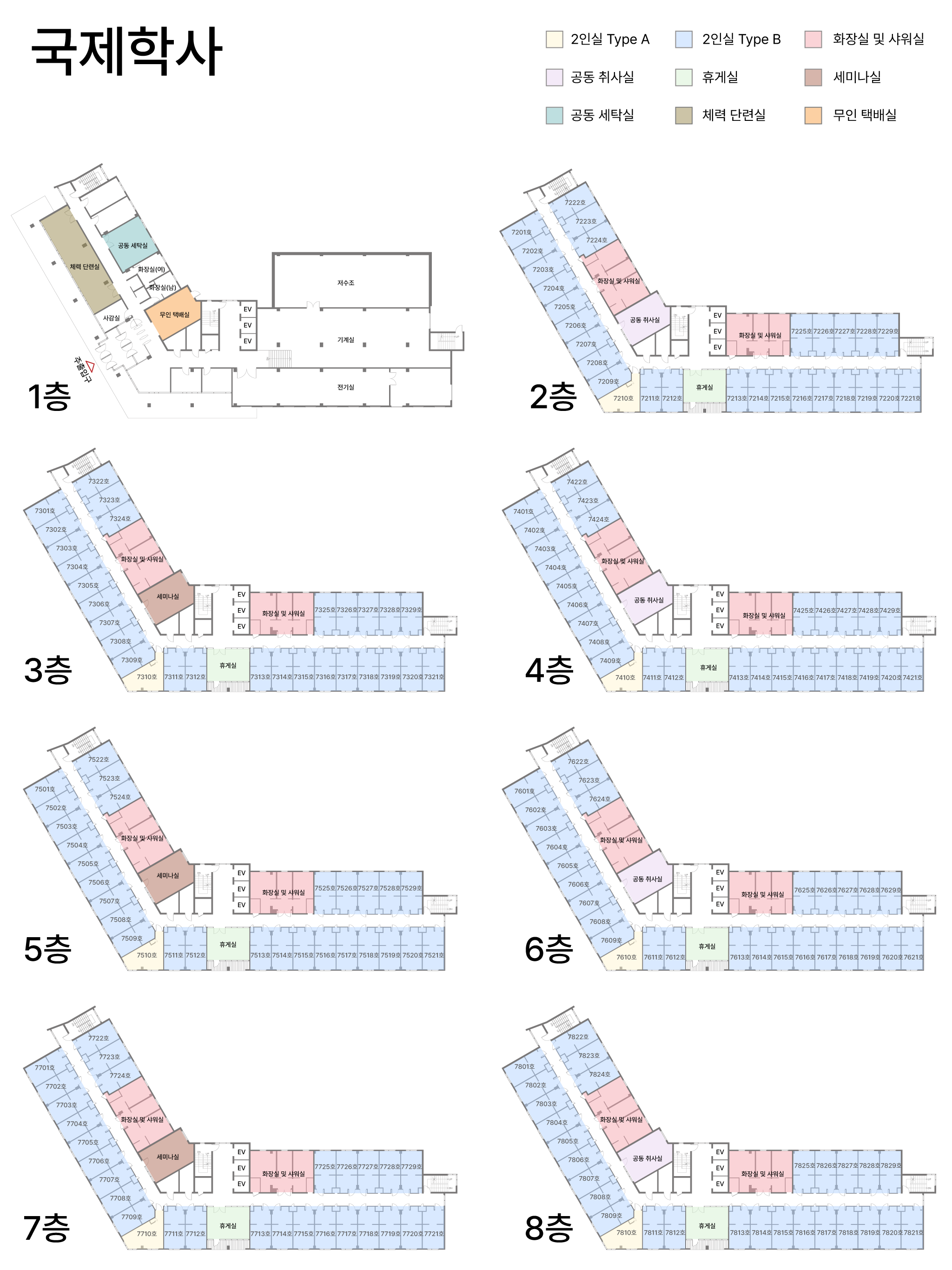 - TYPE B : 2인실(공용화장실, 코너형)