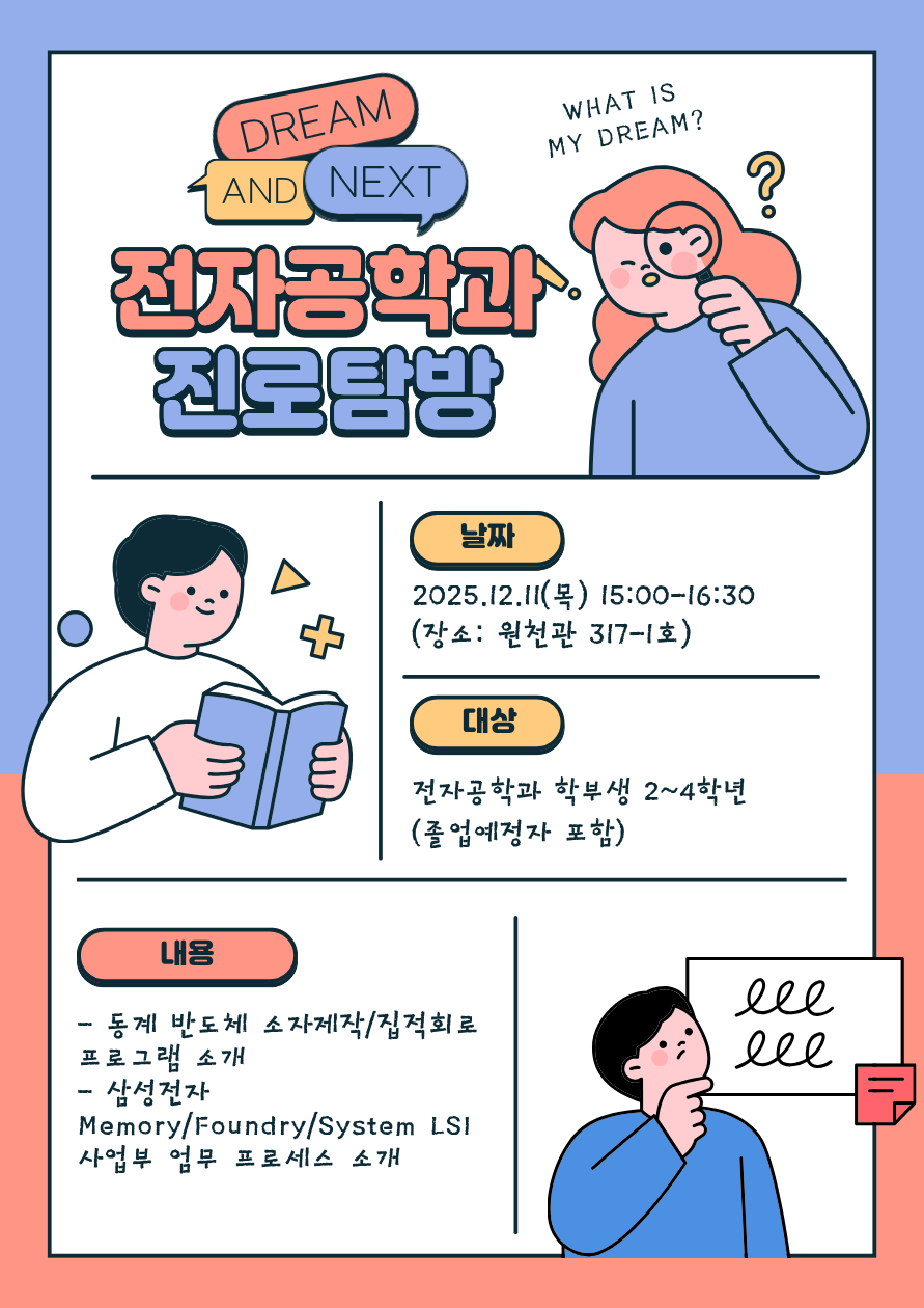 전자공학과 학생분들의 많은 관심을 바라며, 아래 일정과 내용 확인하시어 참여해주시길 바랍니다.