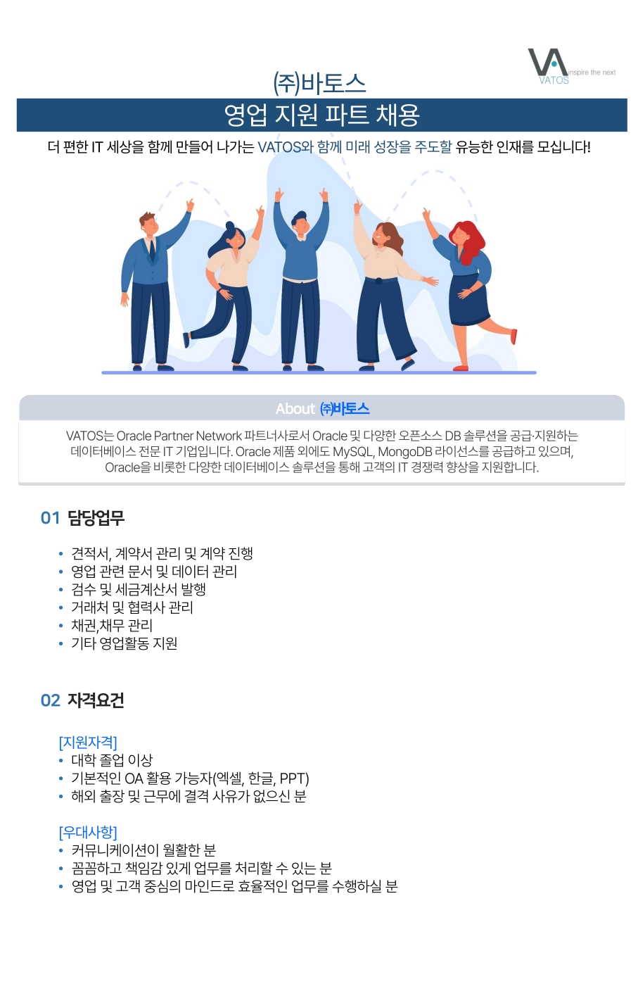 [취업] [(주)바토스] 영업지원 채용 공고 안내 (~3/26)