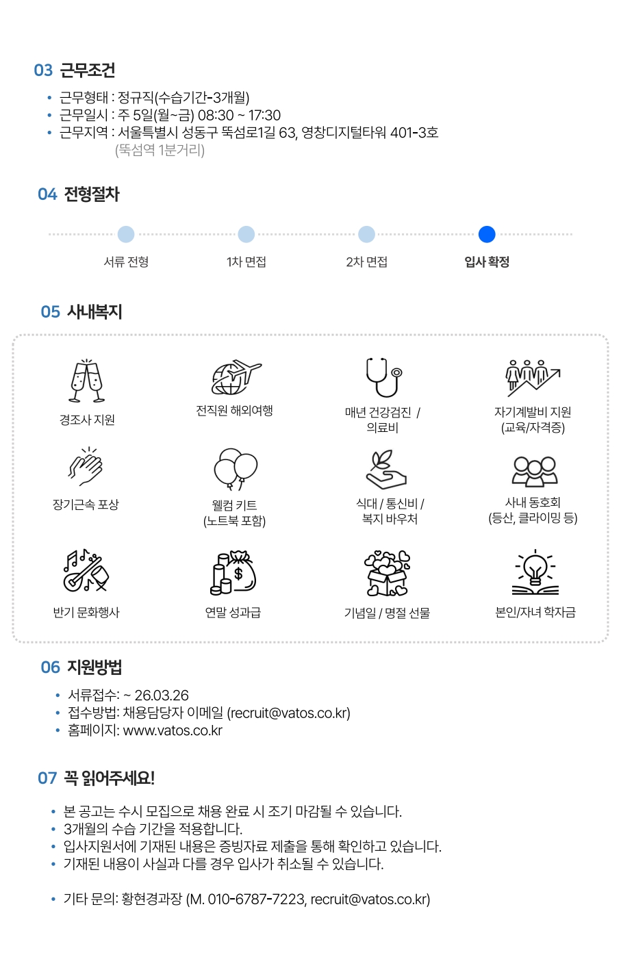 2.㈜바토스 채용안내(서류접수 마감~26.03.26(목))