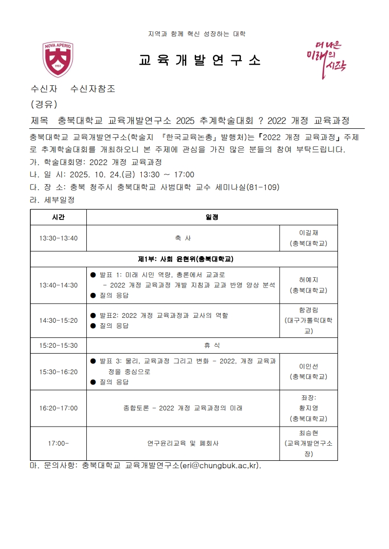 충북대학교 교육개발연구소 2025 추계학술대회 2022 개정 교육과정