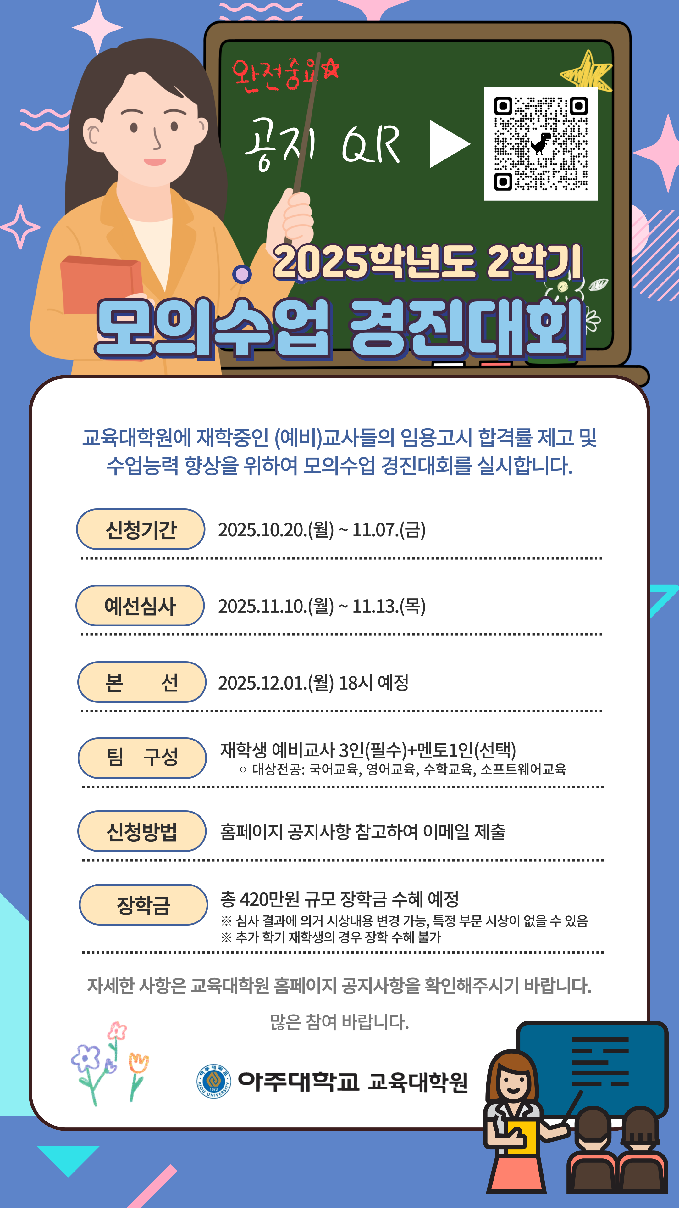 [공지] 2025학년도 2학기 모의수업경진대회 신청 안내(10.20.(월) ~ 11.07.(금))