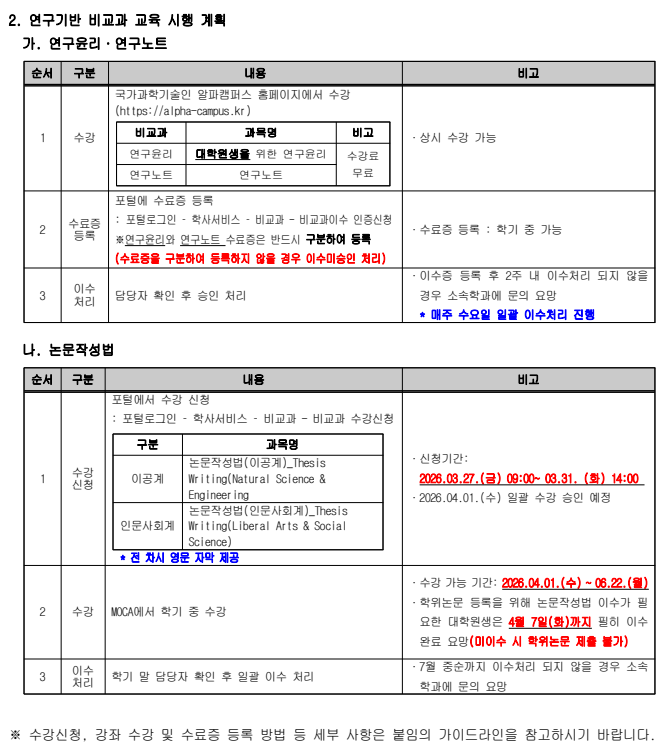 2026-1학기 비교과교육 의무이수기준 및 교육 이수 안내