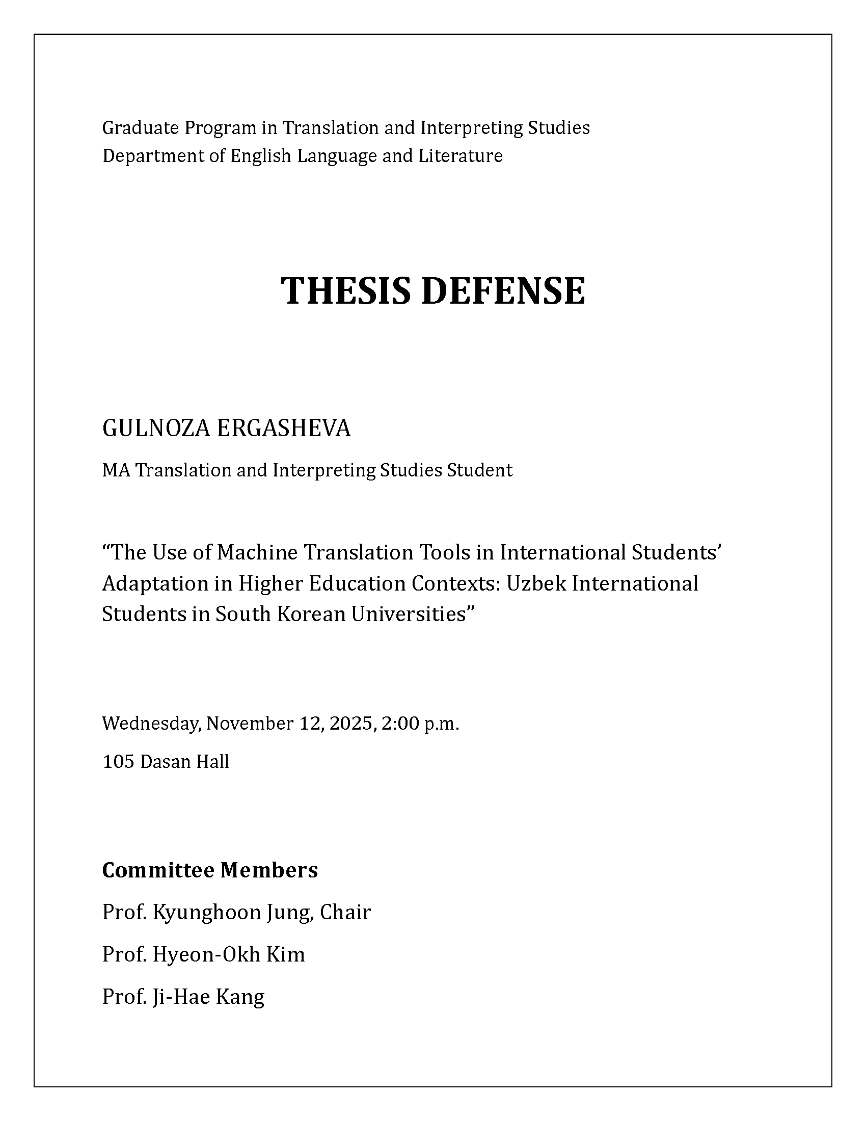 [대학원] 영어영문학과 통/번역 전공 공개논문심사 안내