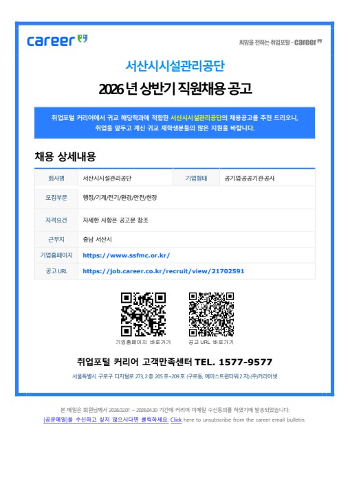[기타] [서산시시설관리공단] 2026년 상반기 직원채용 공고