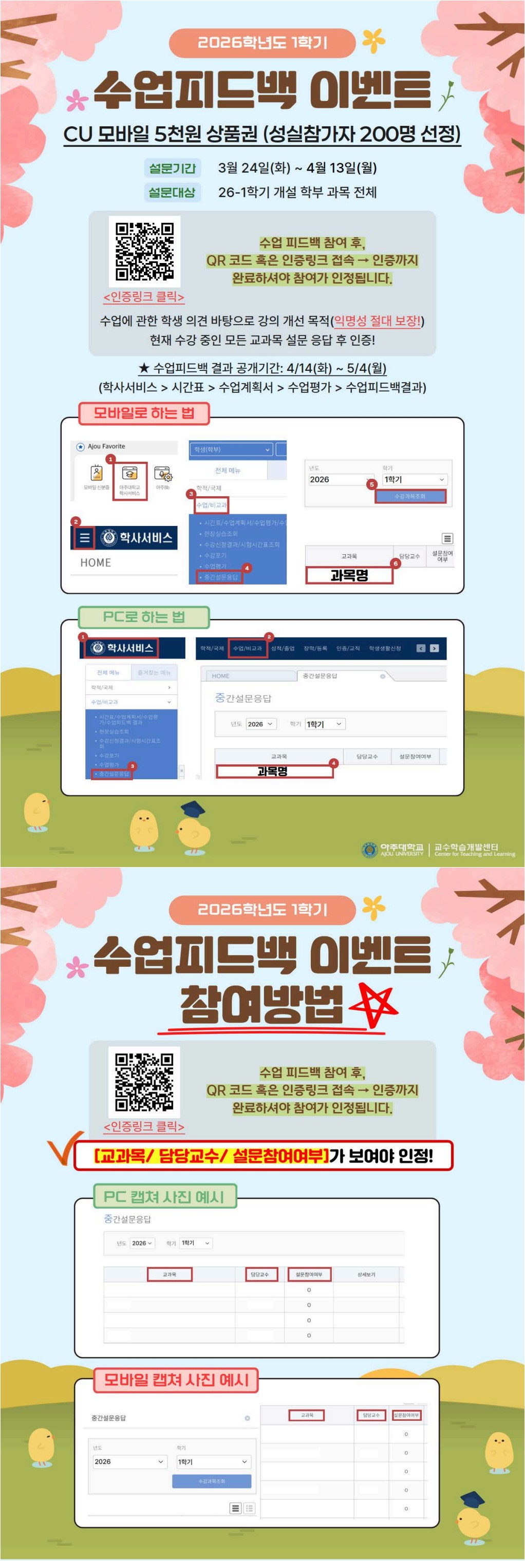 2026학년도 1학기 수업피드백 실시 안내