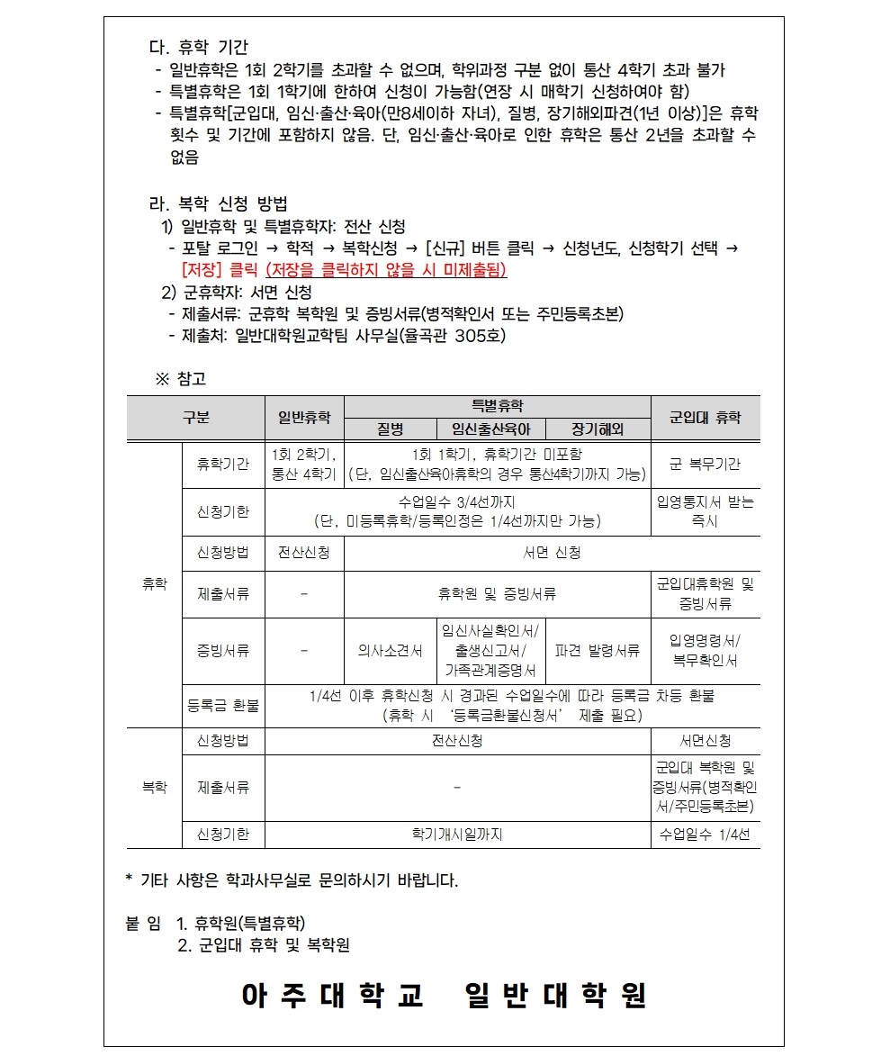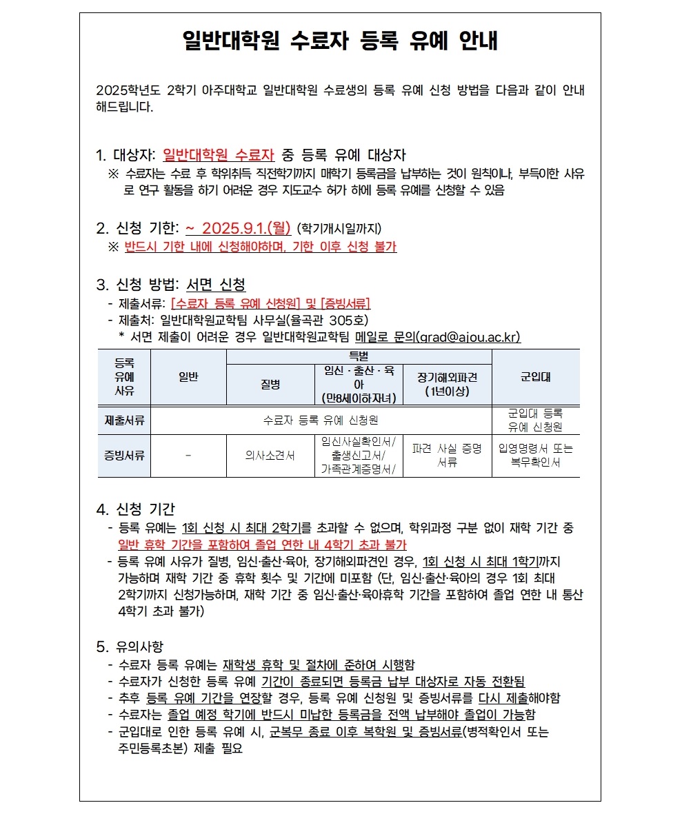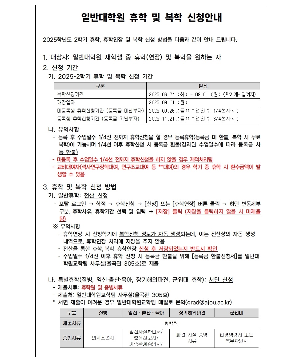 [학사] 2025-2학기 휴학, 복학 및 수료자 등록 유예 신청 안내