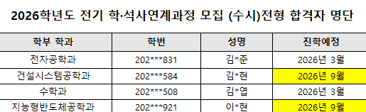 2026학년도 전기 학석사연계과정 수시전형 합격자 공지