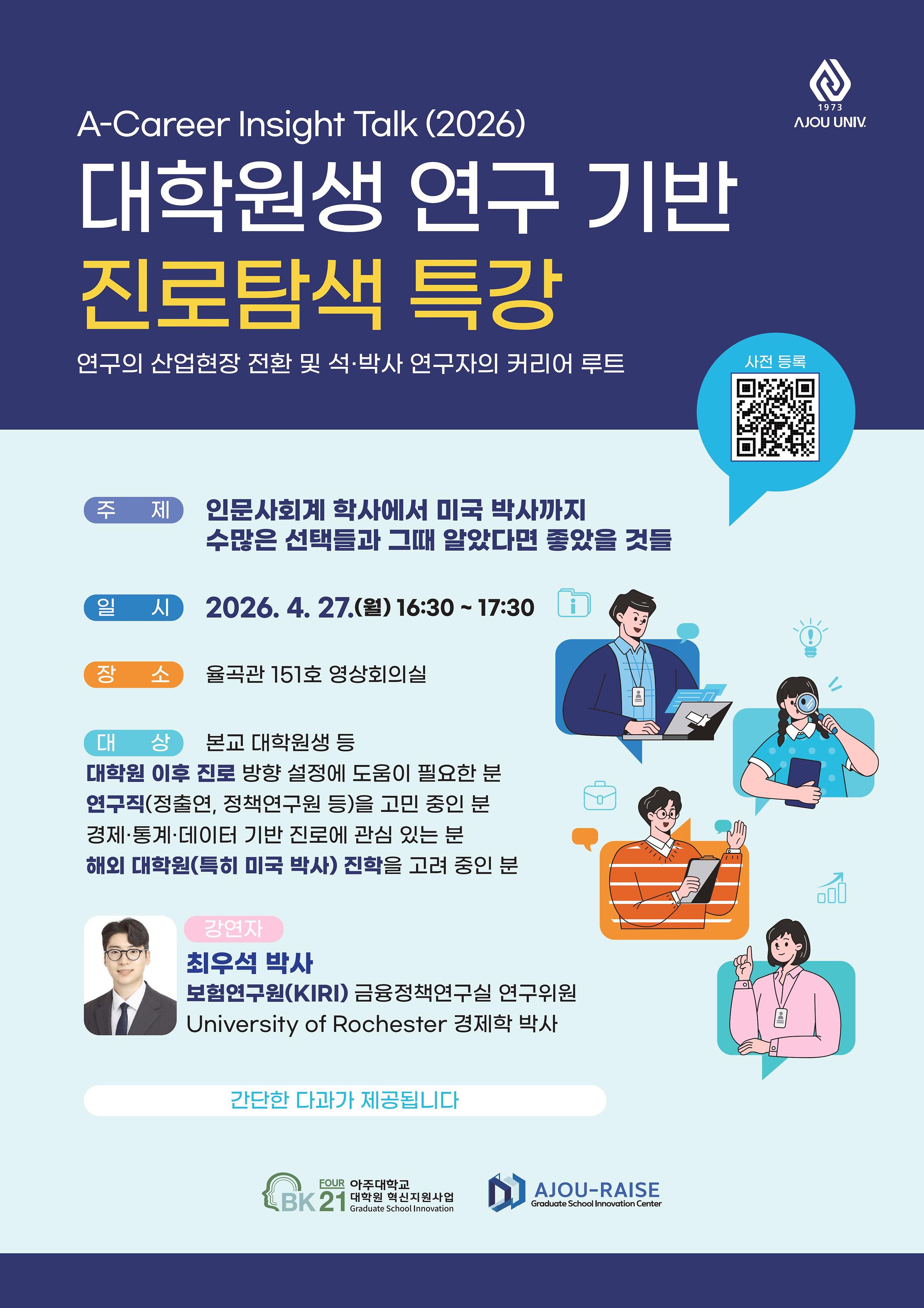 [행사] [BK21대학원혁신] 「A-Career Insight Talk(2026.04.27.)」정출연 & 산업체 R&D로의 진로 탐색 특강
