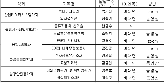 [학사] 2025.10.02(목) 학과별 수업운영 방식 안내(수정)