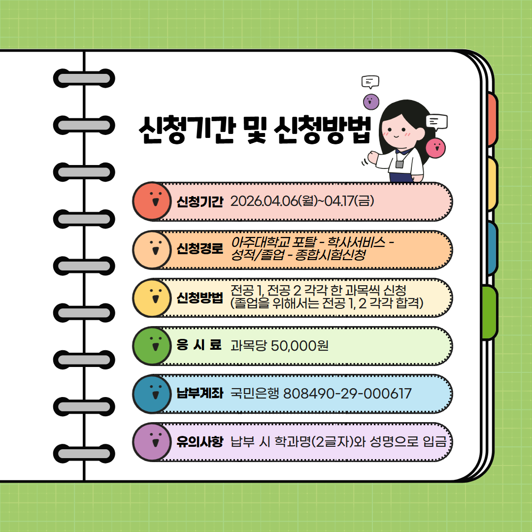 -> 종합시험 신청 완료 후 응시료 미납 시 종합시험 응시불가