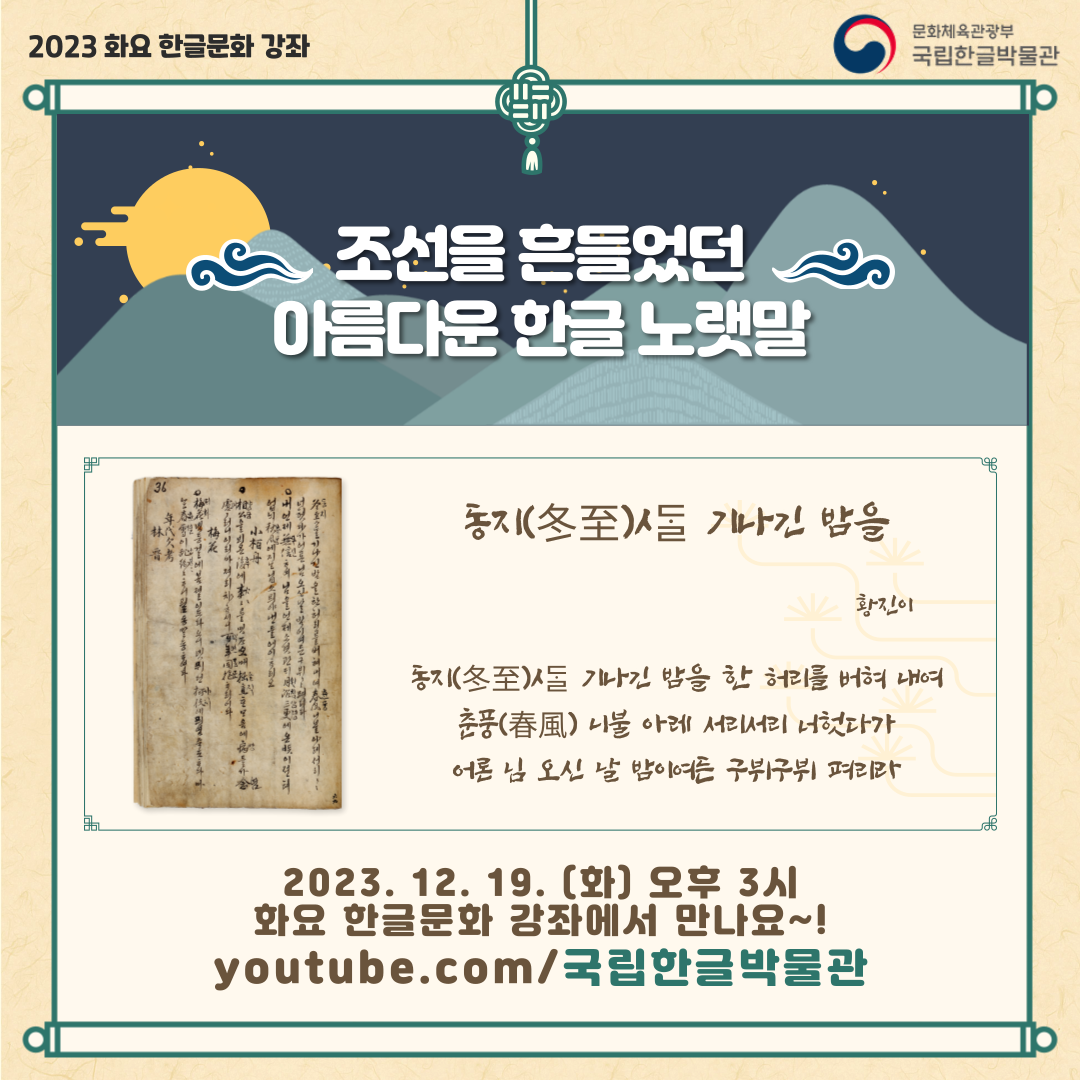 [기타] 2023년 국립한글박물관 화요 한글문화 강좌 안내(제10회차)