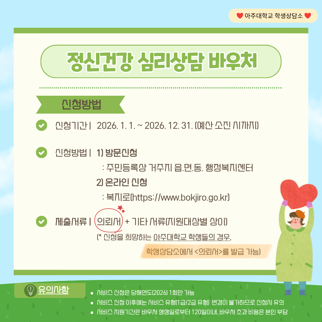 [인권센터 학생상담소] [온마음알리미] 2026년 정신건강 심리상담 바우처 사업 의뢰서 발급절차 안내