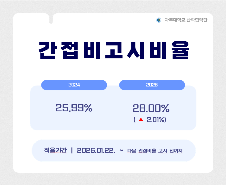 2026년도 간접비고시비율이 고시됨에 따라,