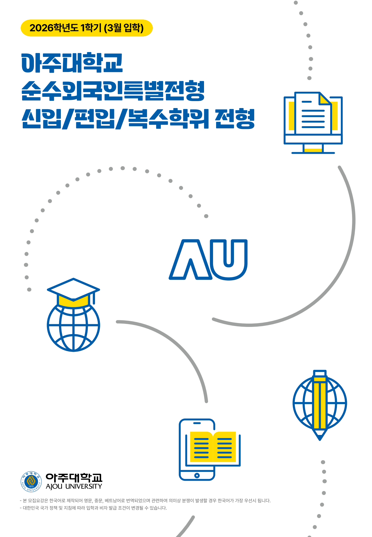 2026학년도 1학기(3월 입학) 아주대학교 순수외국인입학전형 모집요강(4개국어)