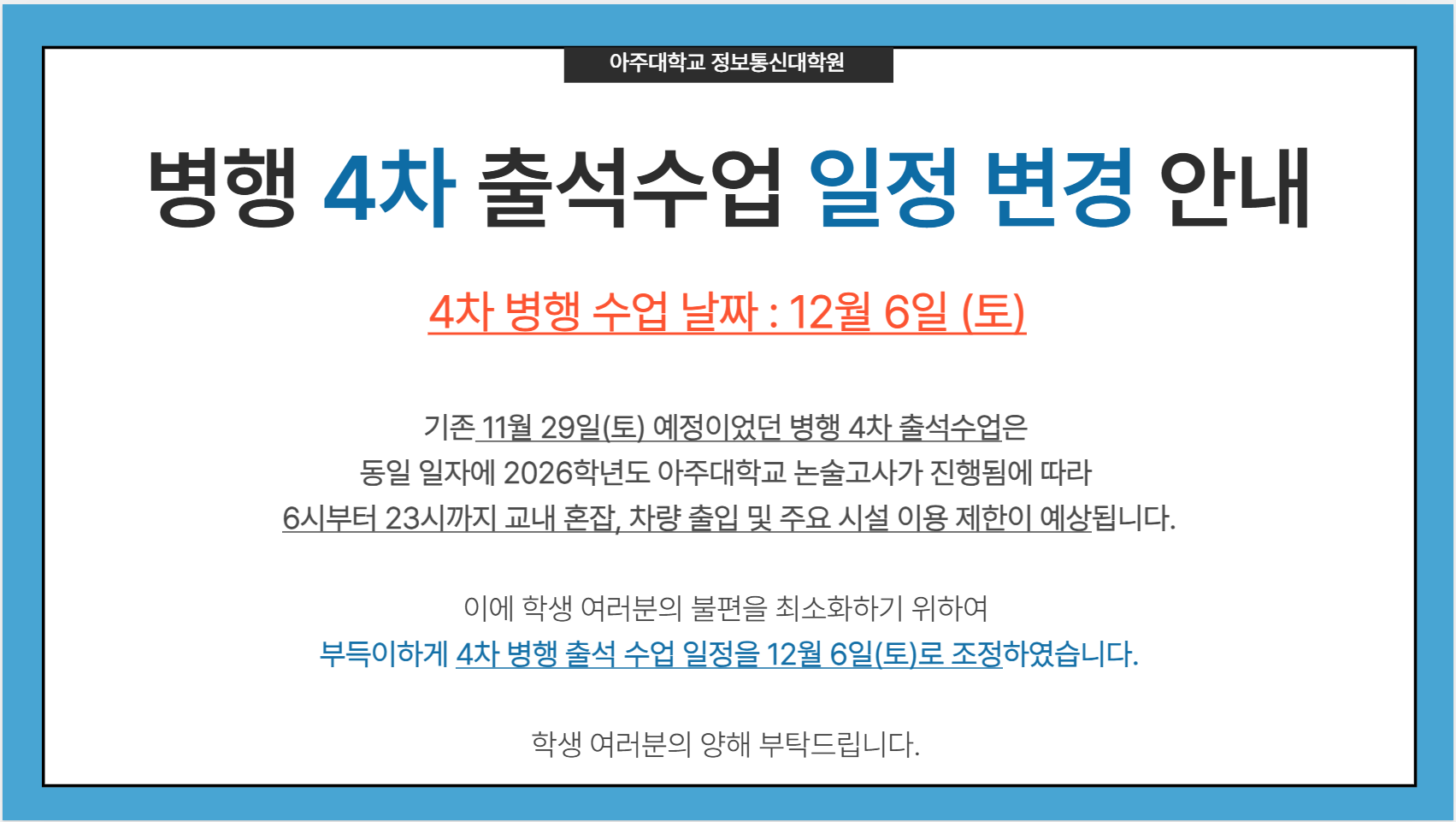 출석 수업 학생 네트워킹 행사 안내 (11월 11, 19일)