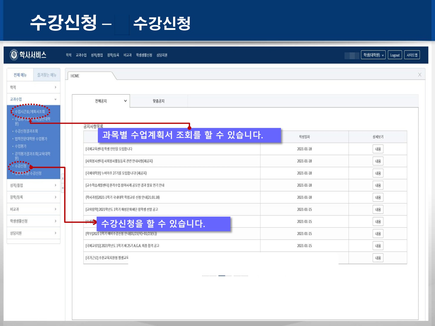2026학년도 1학기 재학생 및 복학생 수강신청 안내