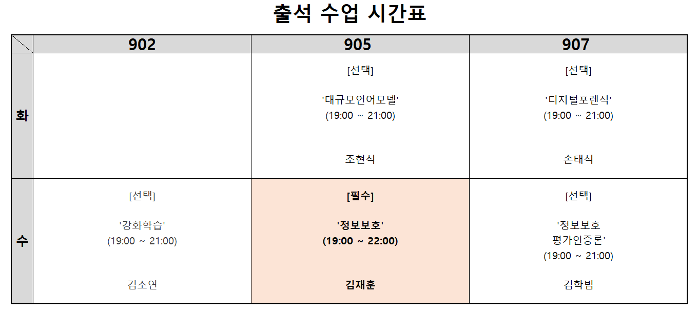 2026-1학기 출석 및 병행 수업 최종 확정 시간표 안내 드립니다.