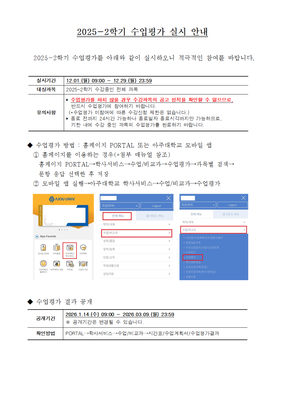 [학사] 2025-2학기 수업평가 실시 안내