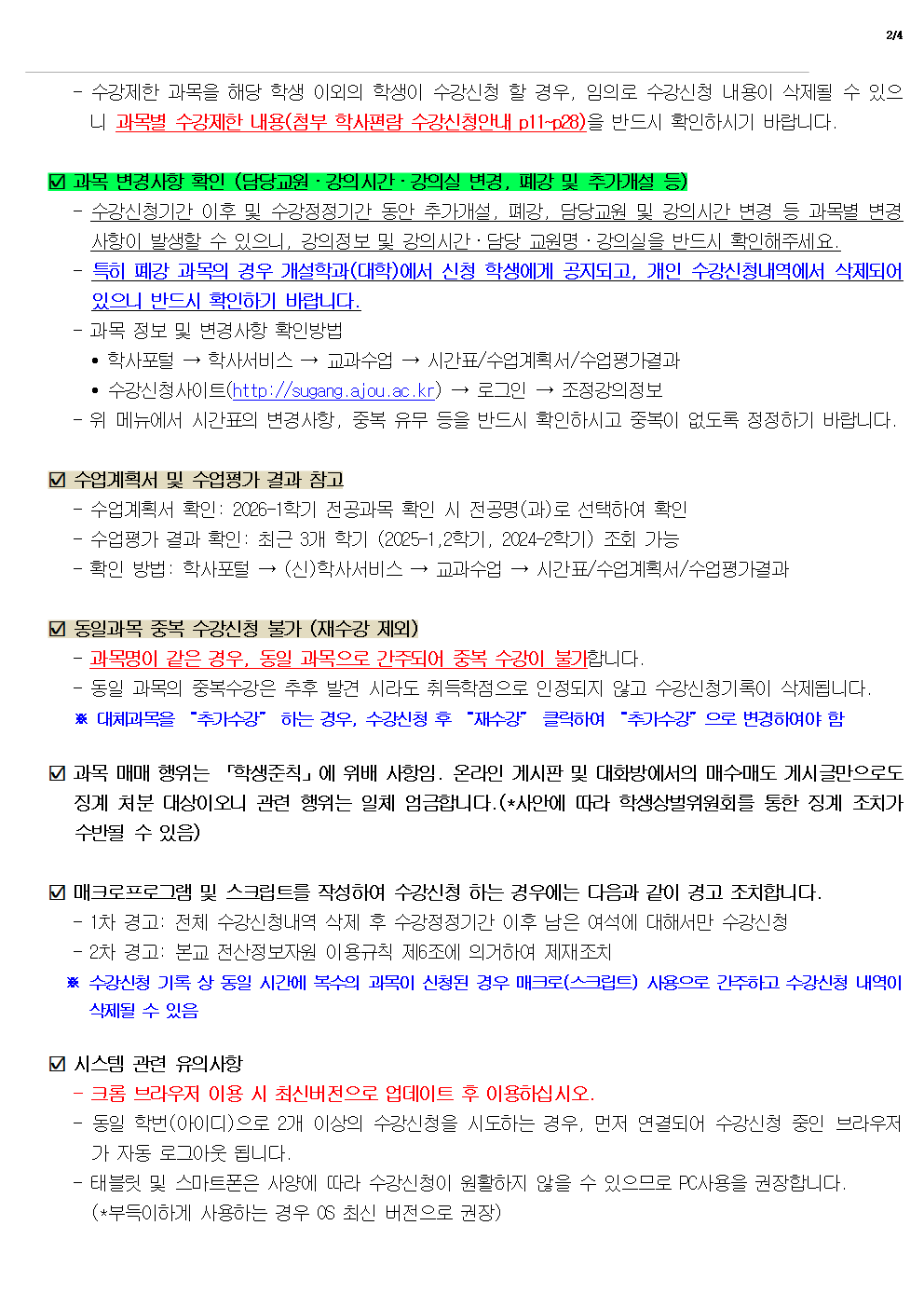 - 메일제목: [26-1 개별수강신청] 학번, 이름, 교과목명(수강번호)