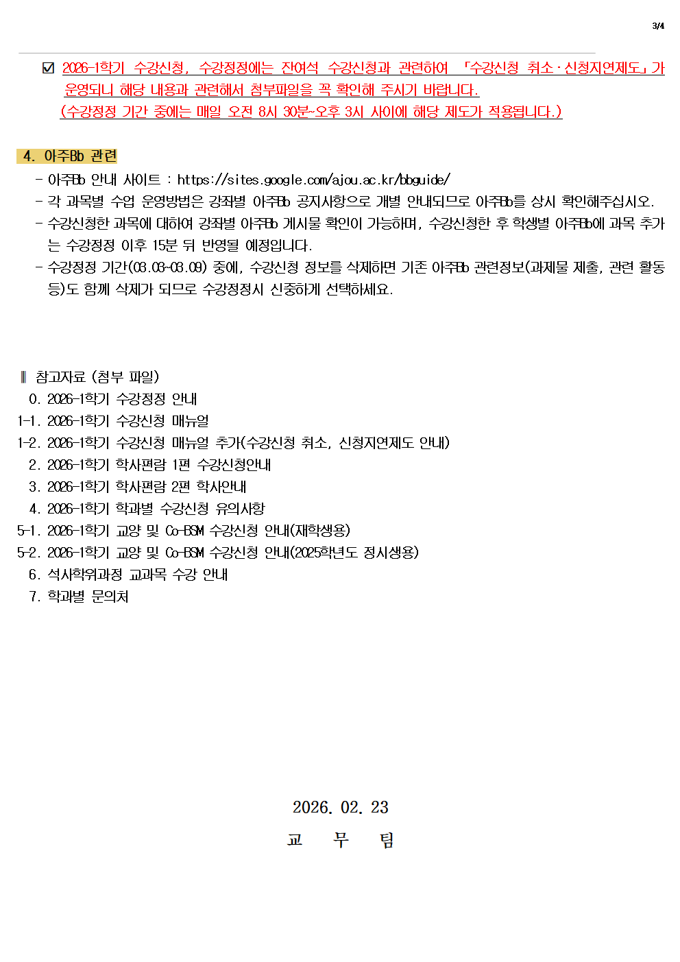 [학부] 2026-1학기 수강정정 안내(03.03(화)~03.09(월)) 공지사항 바로가기
