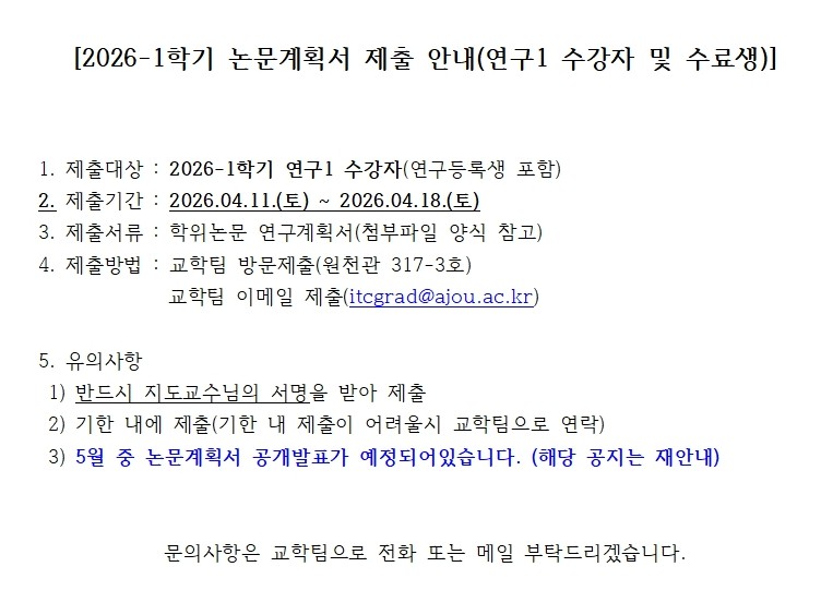 2026-1학기 논문계획서 제출 안내