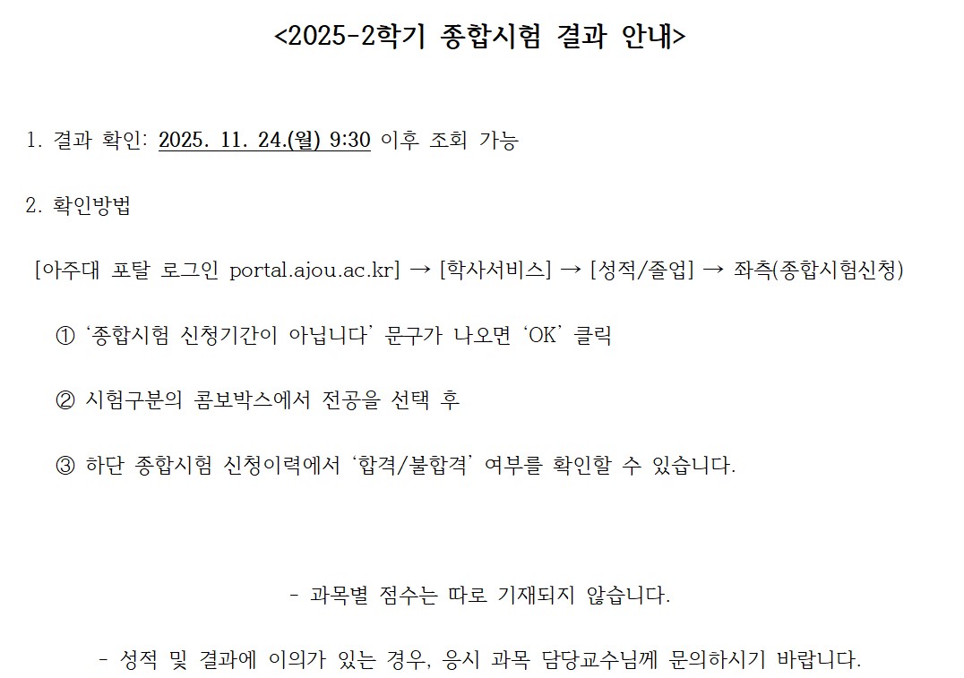 2025-2학기 강의평가 실시 및 성적 확인 안내