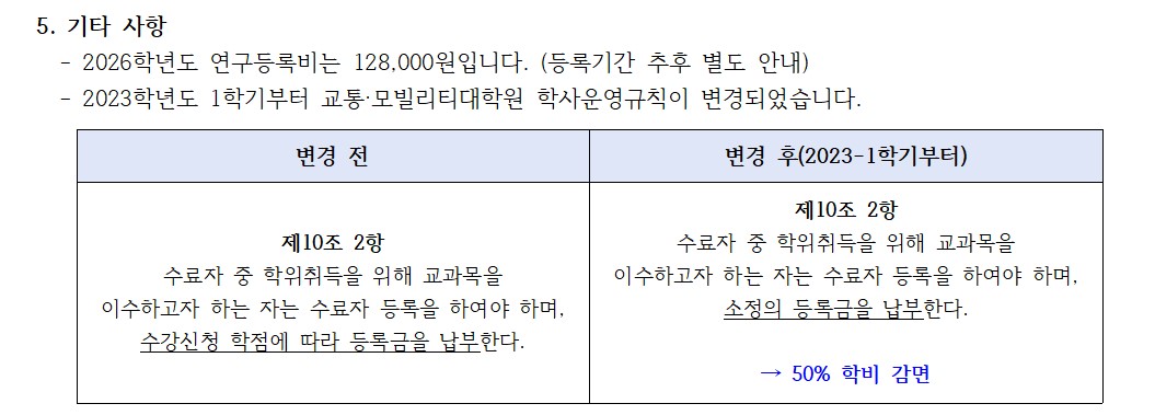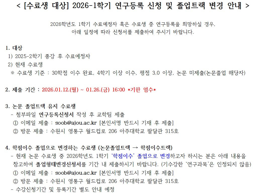 [수료생 대상] 2026-1학기 연구등록 신청 및 졸업트랙 변경 안내