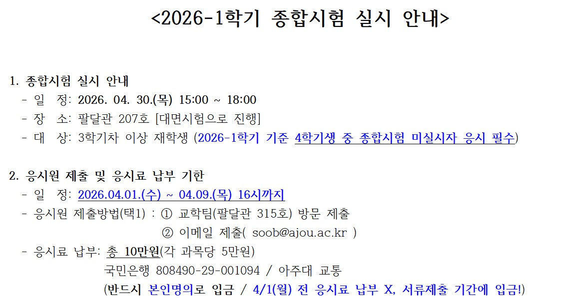 [공지] 2026-1학기 종합시험 실시 안내