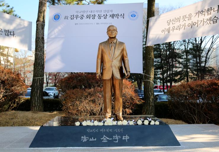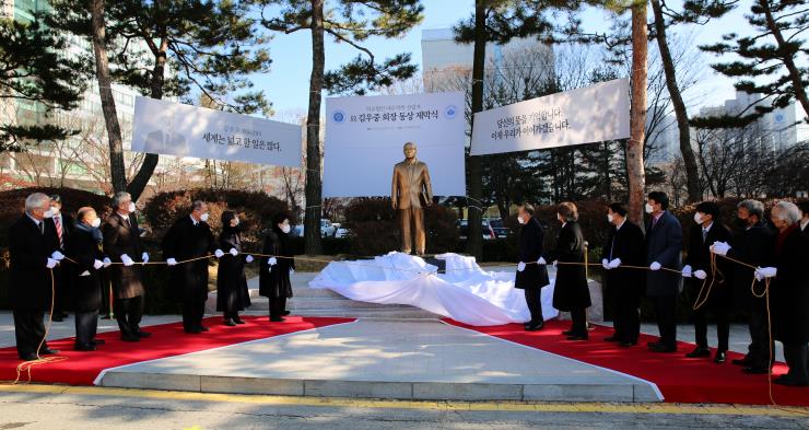 학교법인 대우학원 설립자 고 김우중 회장의 영면 1주기를 맞이하여 동상 제막식이 마련됐다.