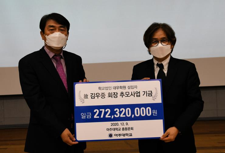 앞서 대우학원 설립자 추모사업의 일환으로 우리 학교 총동문회에서는 지난 9월부터 기금 모금을 진행했다. 동문과 교직원을 비롯한 총 300여명이 참여해 2억7200만원 상당의 기금이 모였다. 설립자 추모사업에 사용된 기금 이외의 기부금은 아주대 학생들을 위한 장학기금으로 사용될 예정이다.
