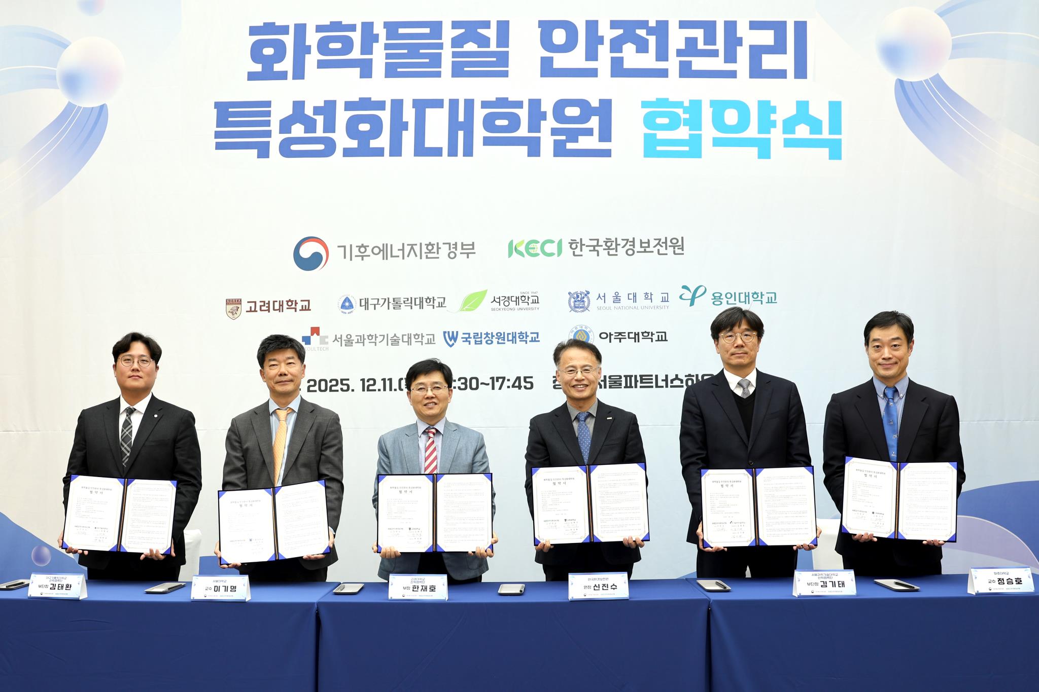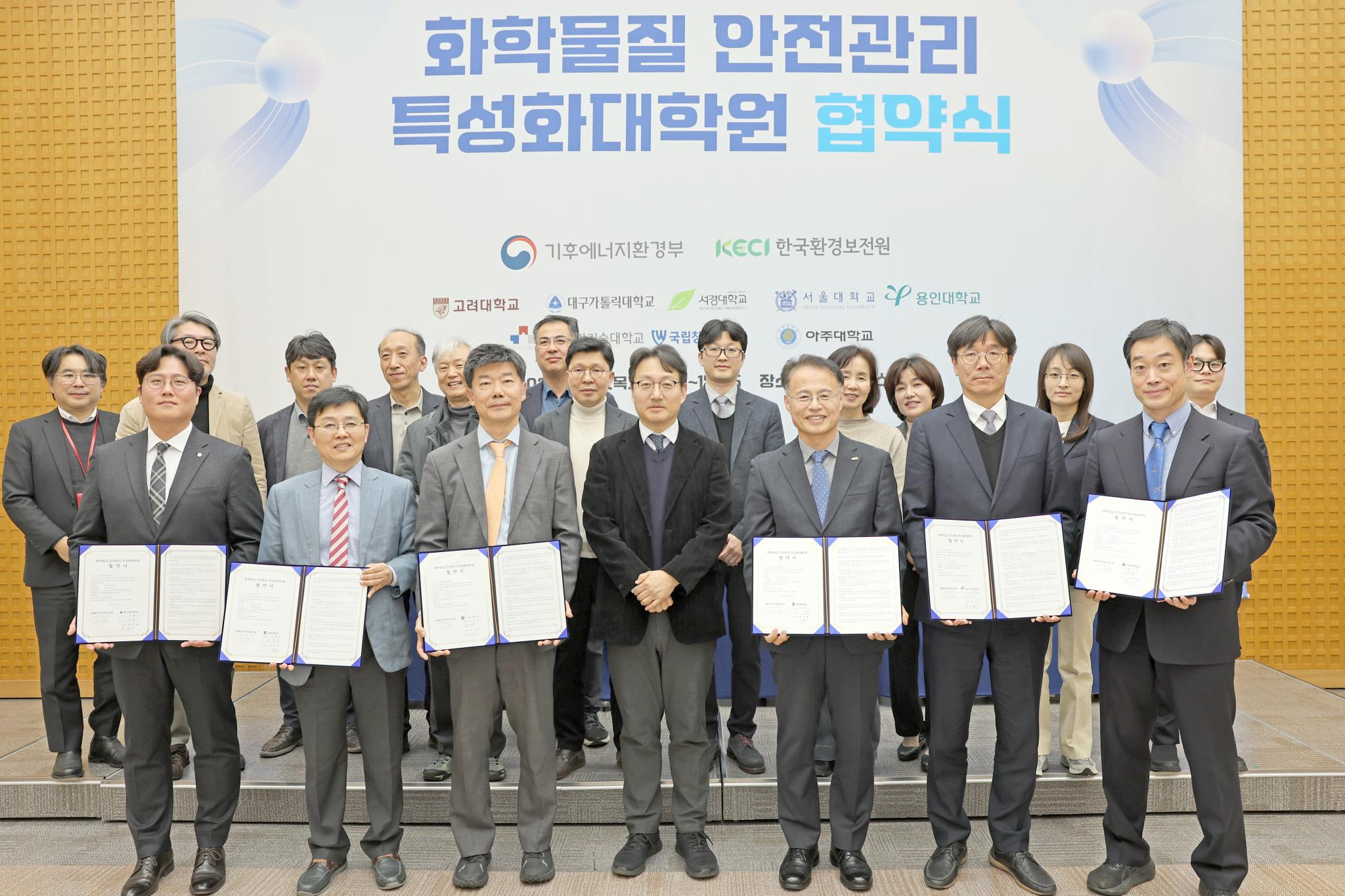 11일 진행된 기후에너지환경부와 참여 대학들의 업무협약식에서. 앞줄 제일 오른쪽이 아주대 정승호 교수