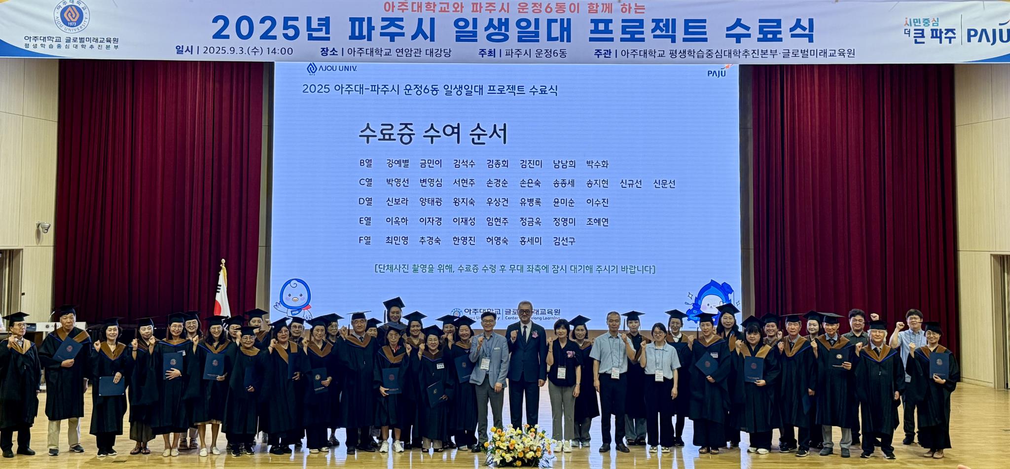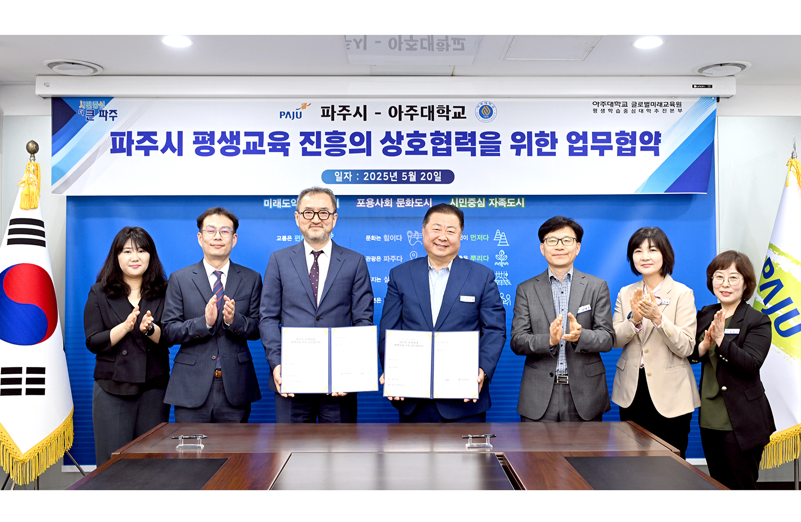 이성엽 아주대 글로벌미래교육원장은 “이번 유공 표창은 파주시와의 긴밀한 협력 속에서 이뤄낸 공동의 성과”라며 “앞으로도 지역사회와 함께 성장하는 평생학습 플랫폼으로서 대학의 사회적 책무를 충실히 수행하겠다”라고 전했다.