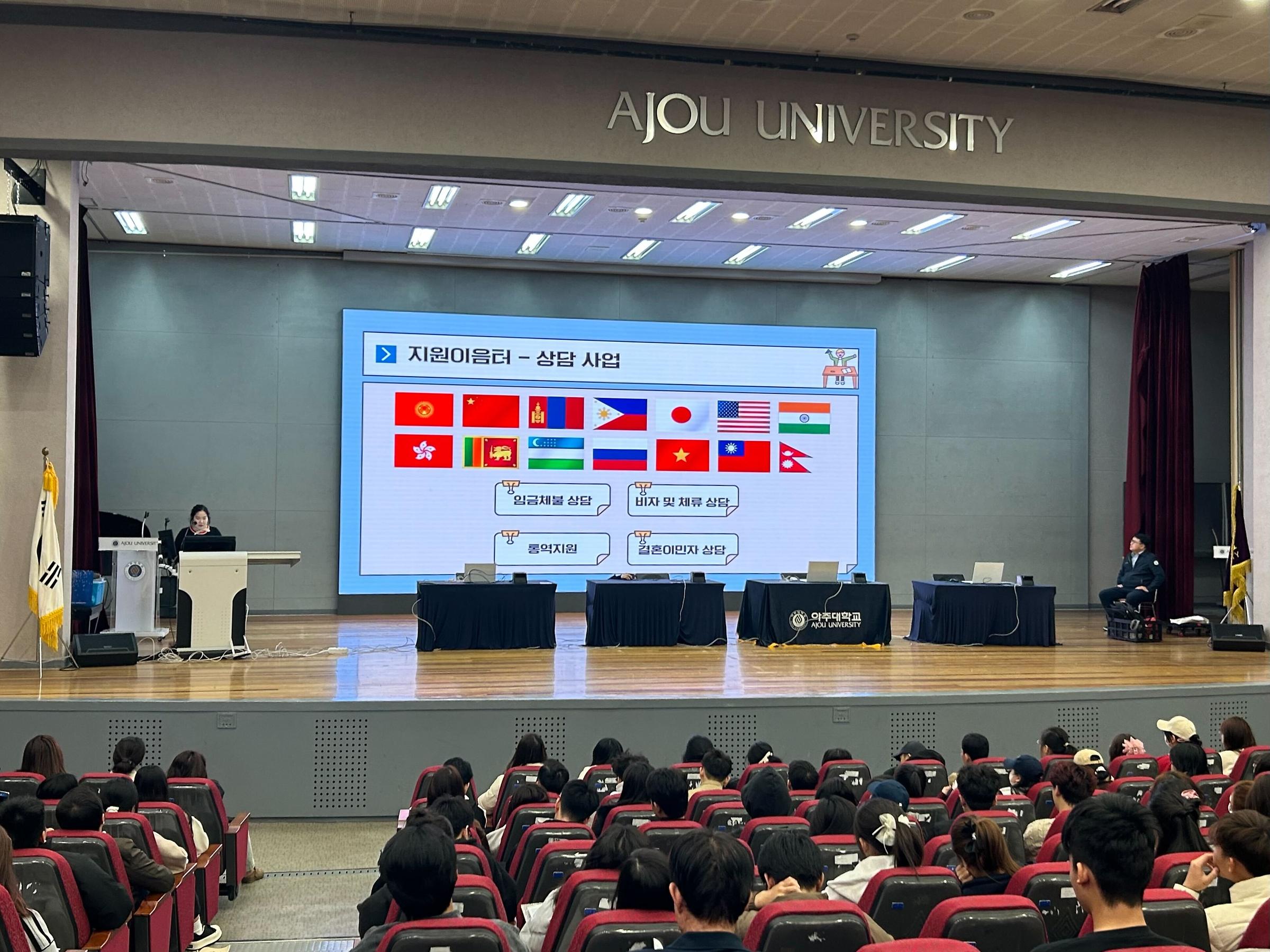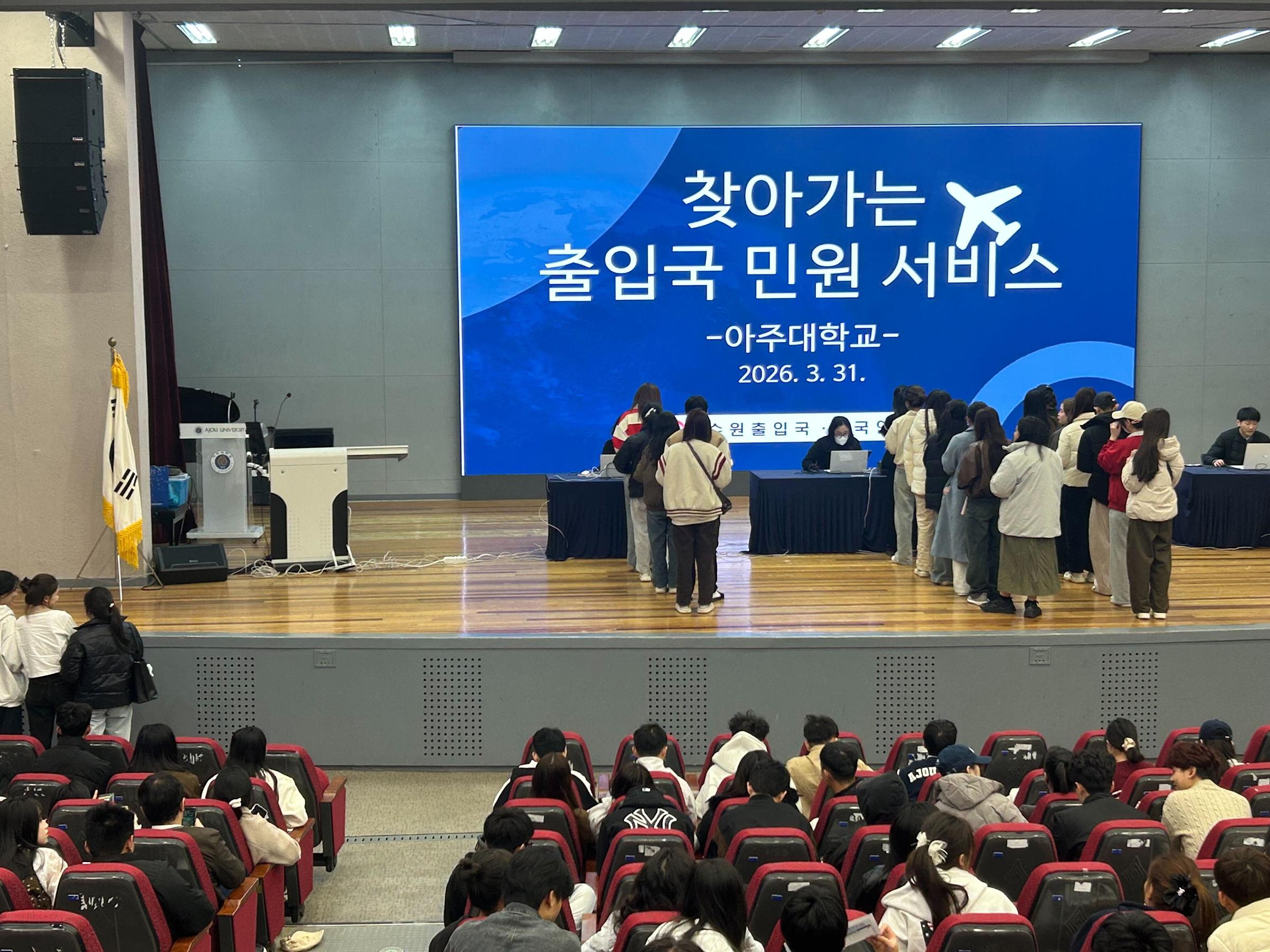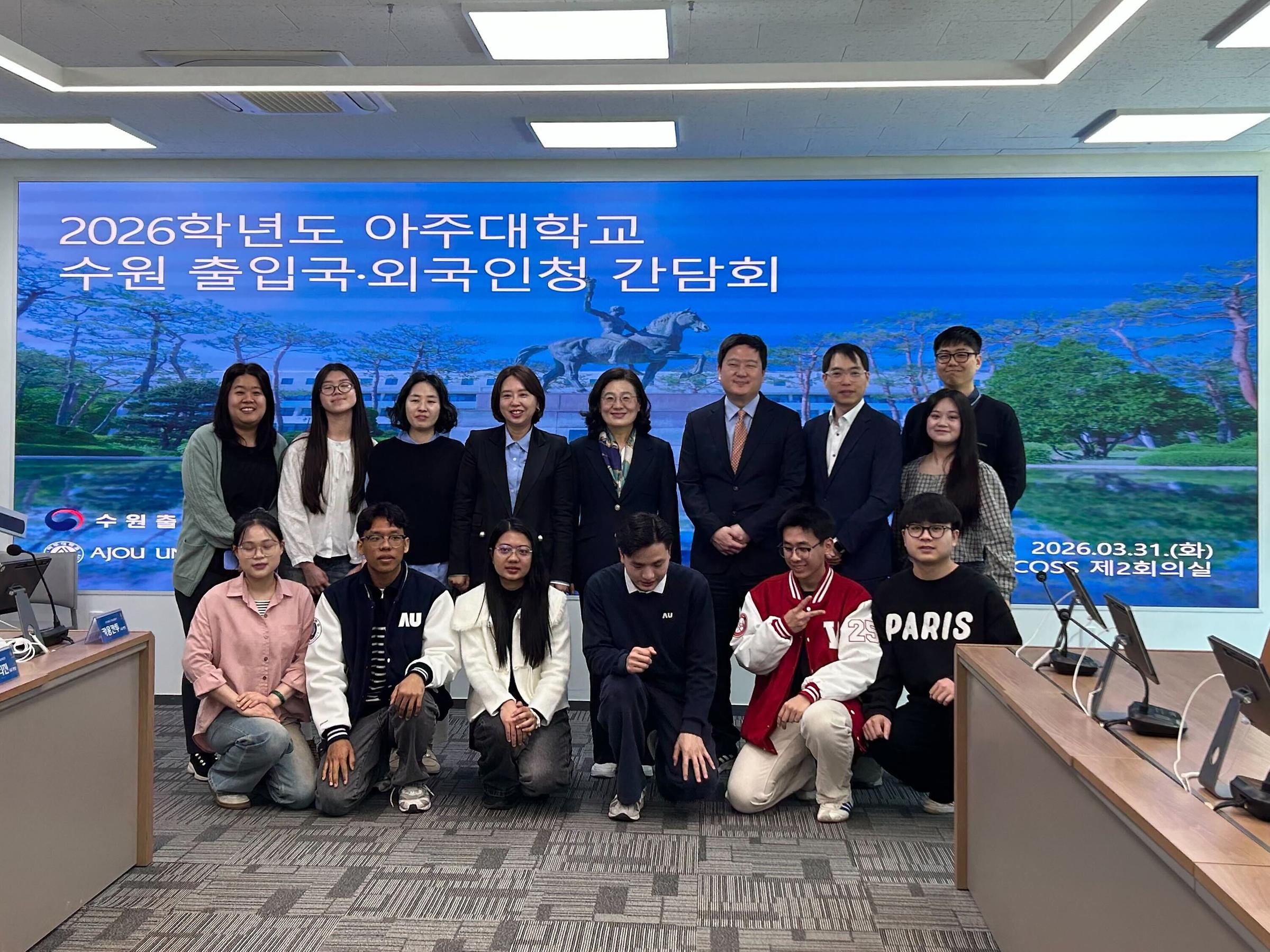 아주대학교는 2026년 3월 31일 수원출입국·외국인청(이하 수원청)과 함께 ‘수원출입국·외국인청장님과 함께하는 유학생 간담회’를 개최하고, 외국인 유학생 신입생을 위한 ‘지문등록 출장소’를 운영했다.