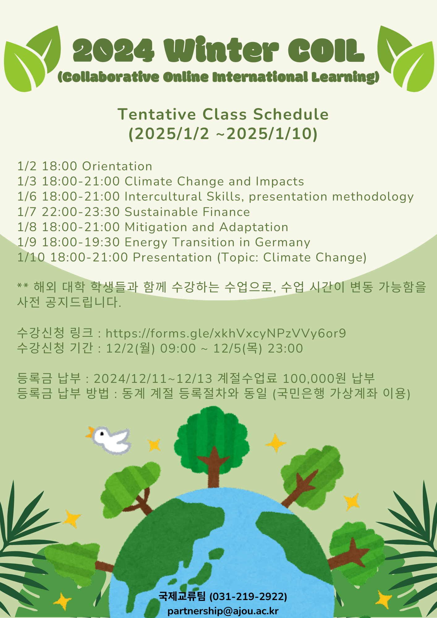 [학사] [국제교류팀] 2024학년도 동계 계절 COIL(해외 자매대와 함께하는 온라인 수업) 수강신청