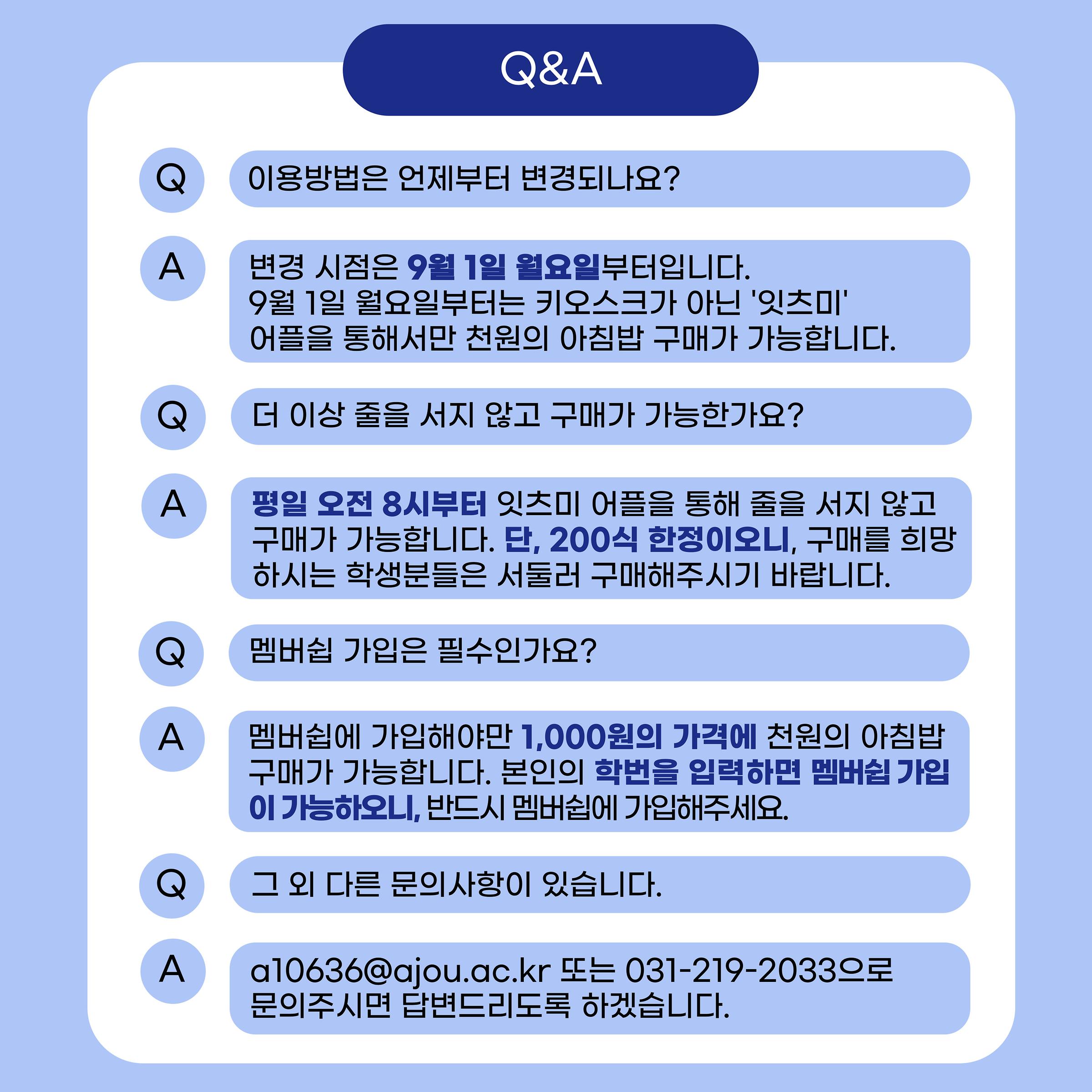 - 2025학년도 2학기 천원의 아침밥 이용방법 변경 안내 -