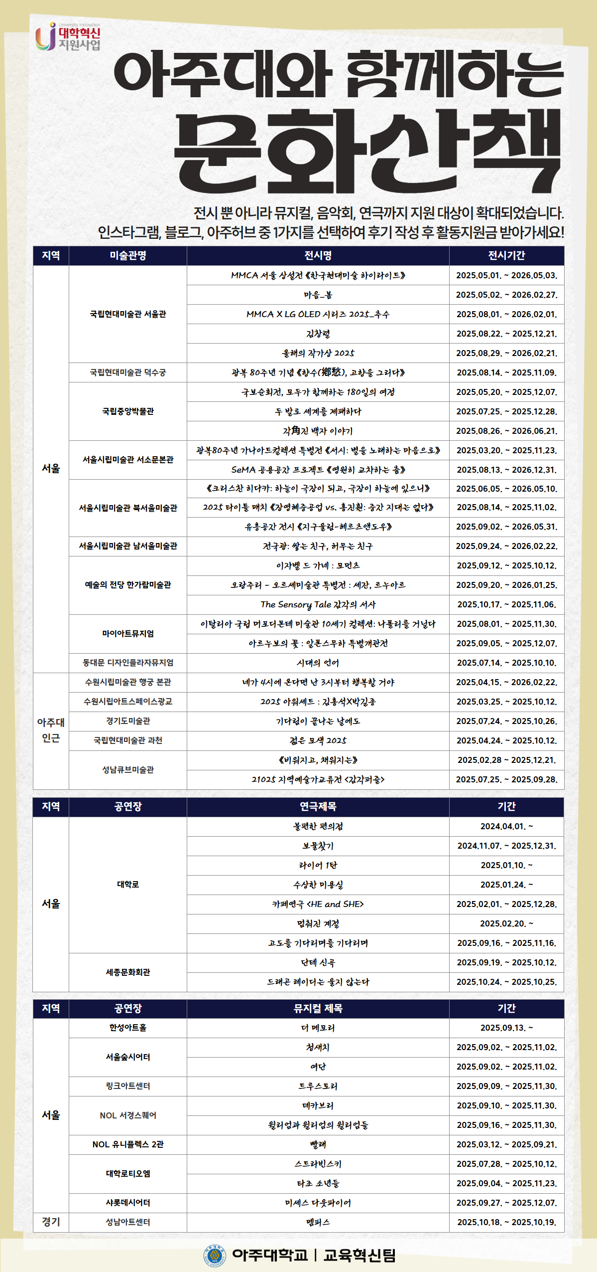 [비교과] [시원한 가을 감수성 채우기🍂] 아주대와 함께하는 문화산책(10월)