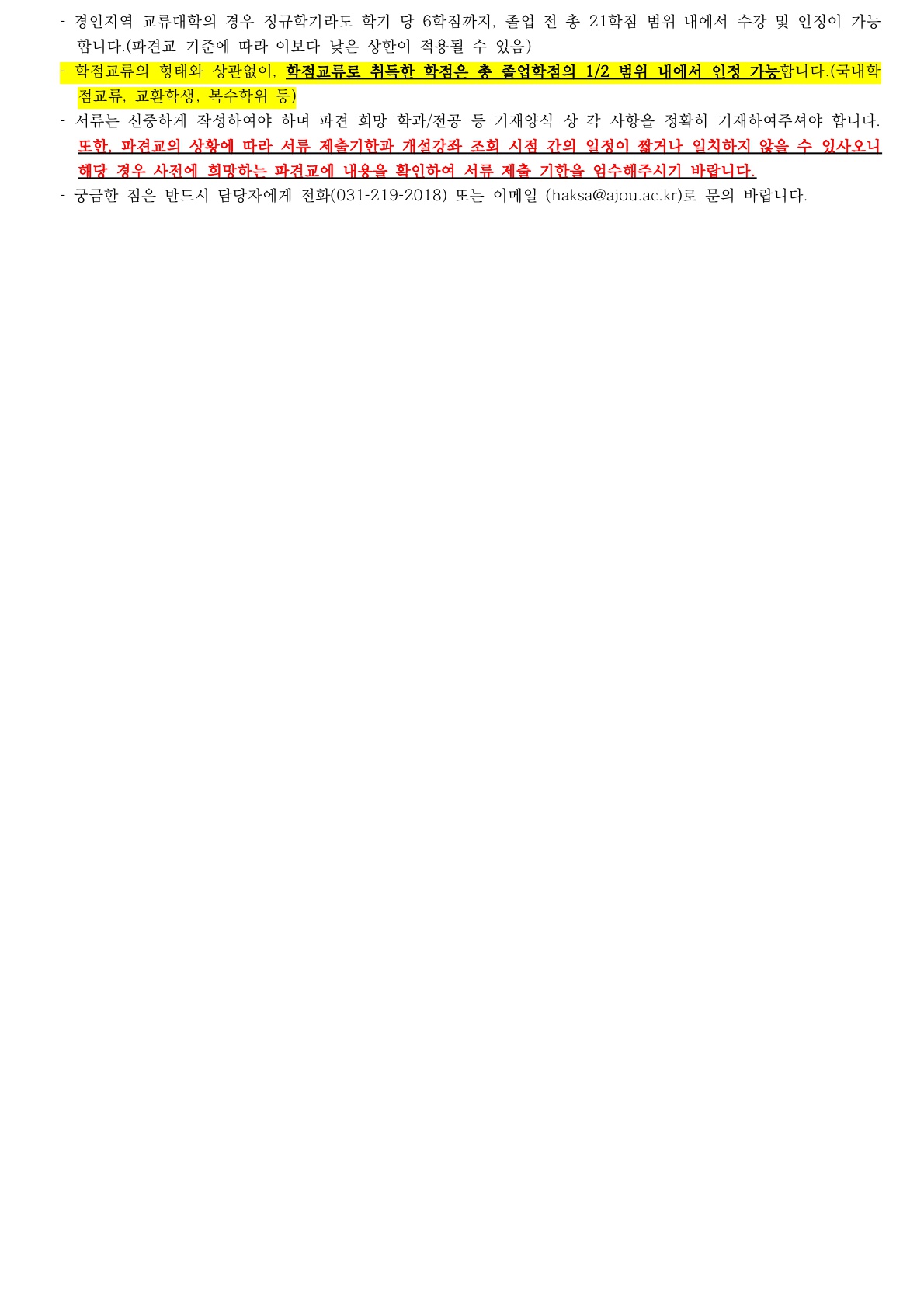 * 각 학교별로 요청하는 신청자 양식이 있으니 확인하시어 이수계획서와 함께 학과사무실로 제출바랍니다.