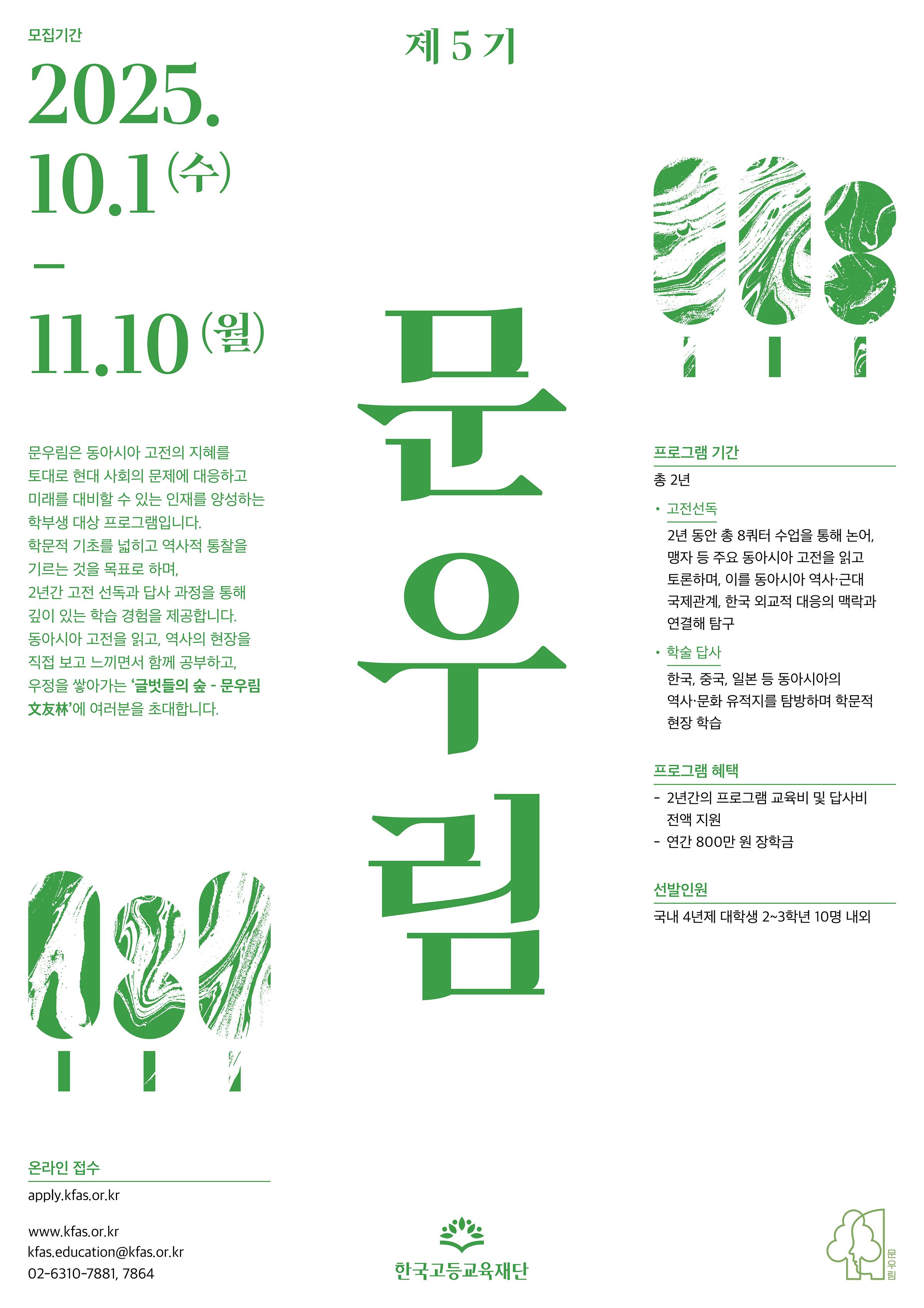 [장학] [교외장학] 한국고등교육재단 문우림 제5기 장학생 모집